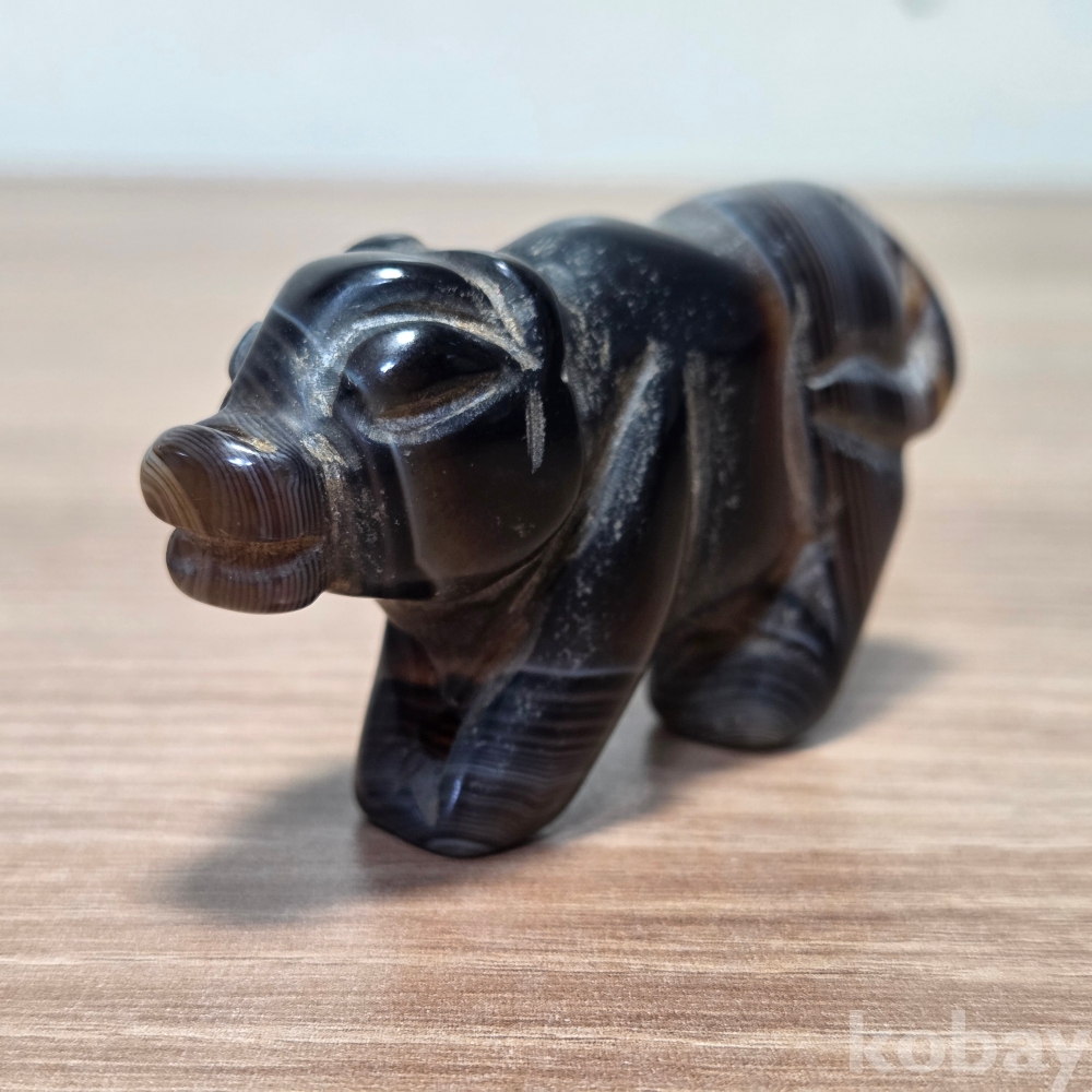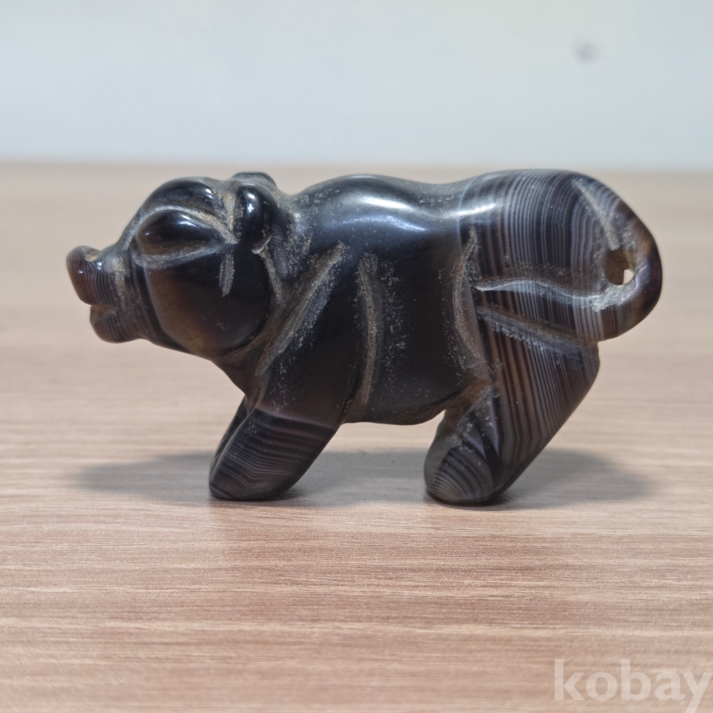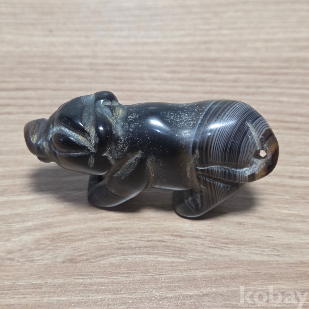 천연 줄무늬 마노(아게이트) 돼지 조각상입니다