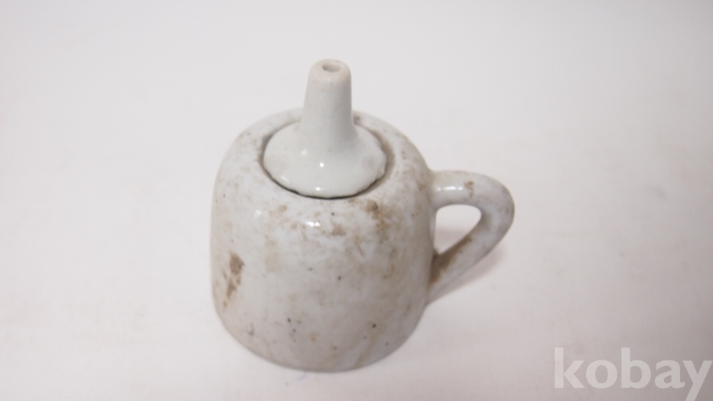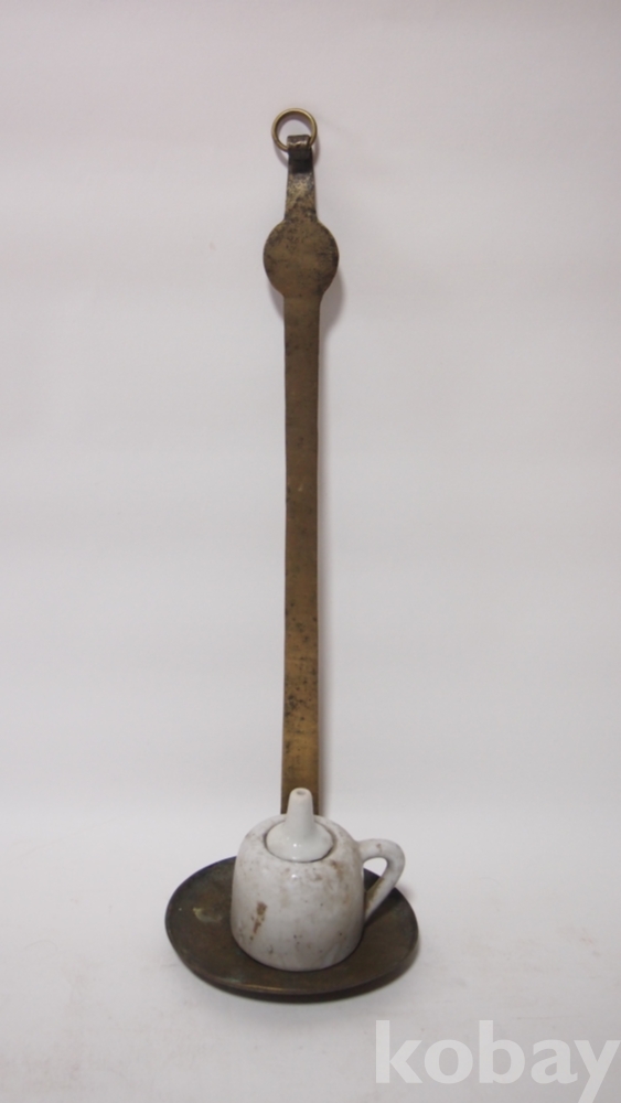 조선의 전통 민속 생활사 전래품/오래된 놋쇠, 방자 등잔대와 백자호롱 세트입니다.