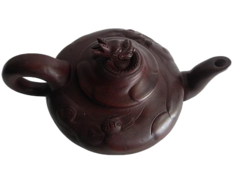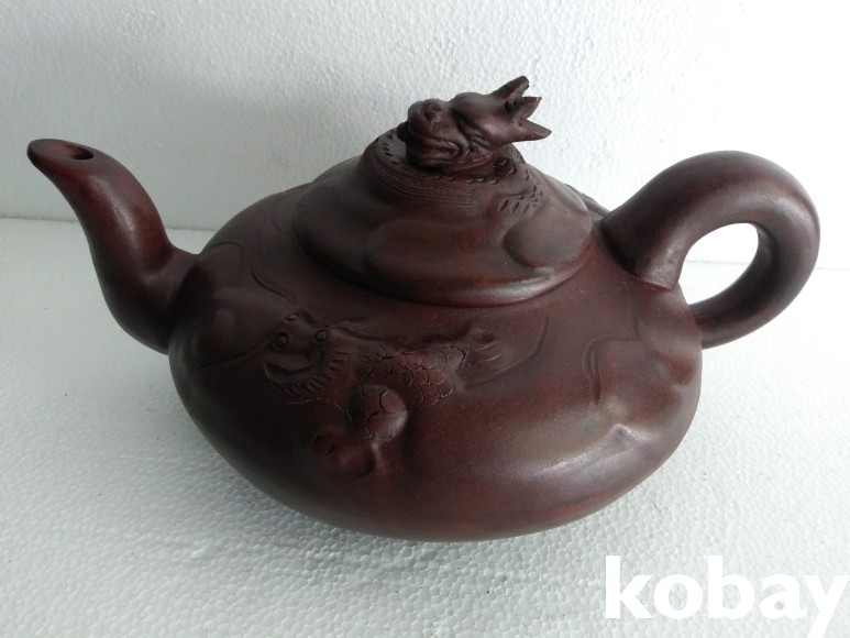 호랑이와 봉황이 표현된 대형 자사 주전자 입니다.