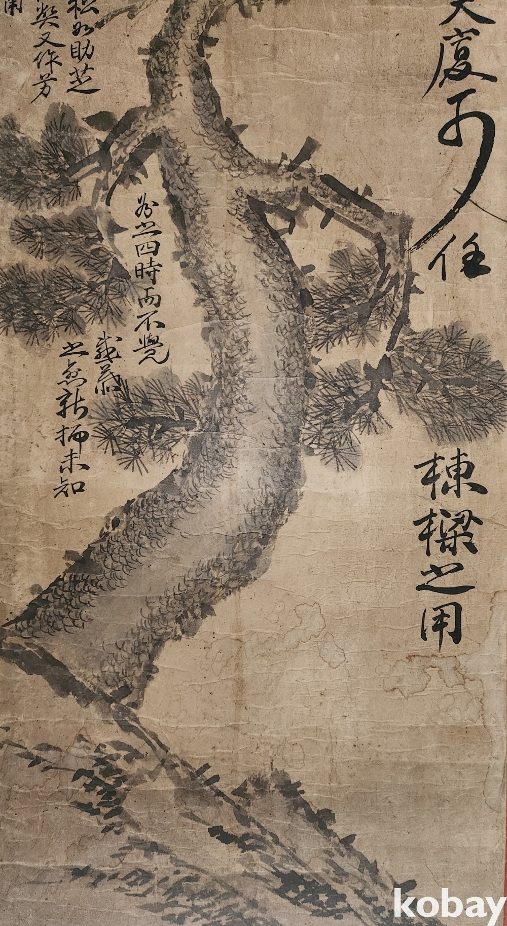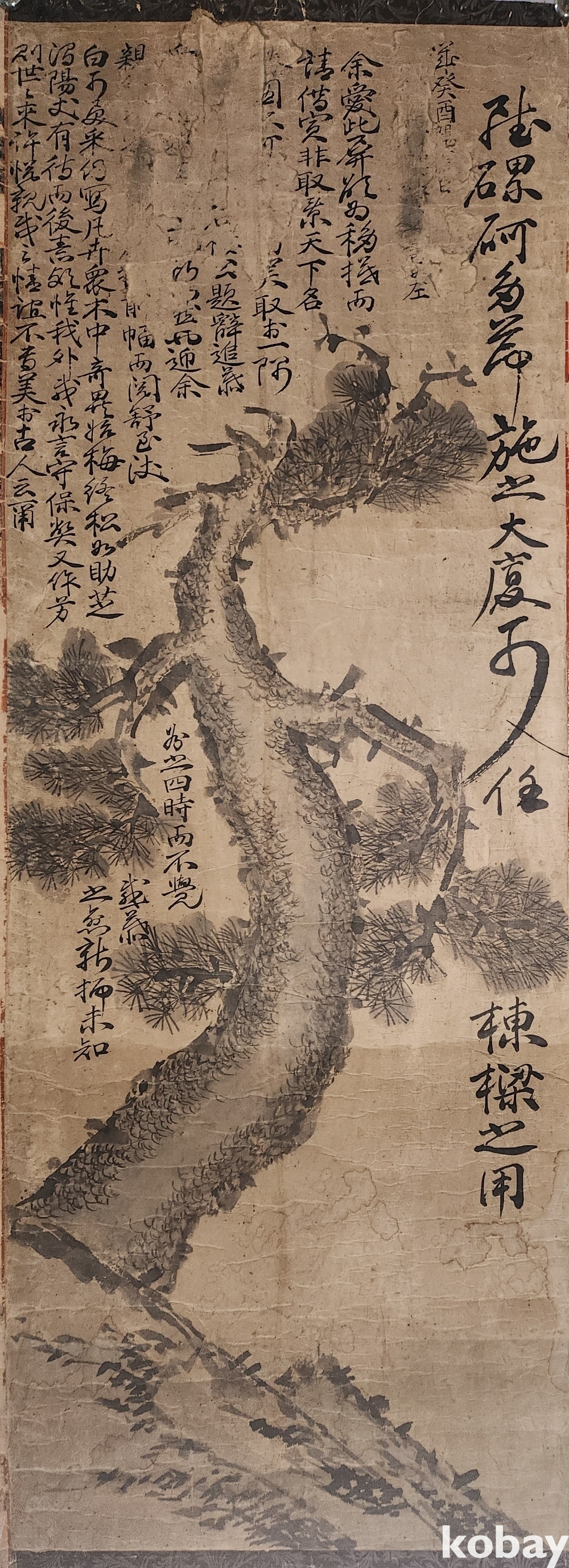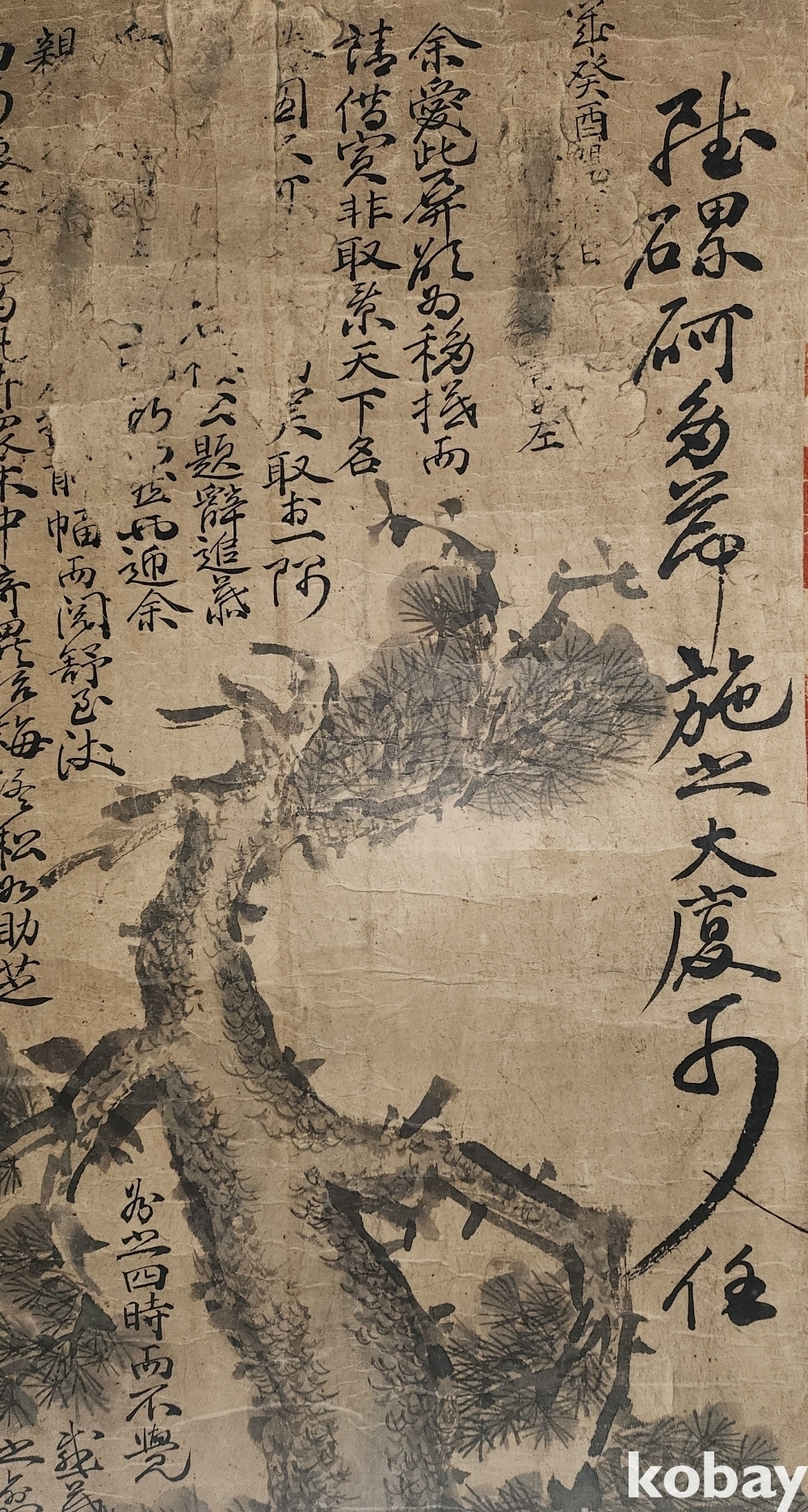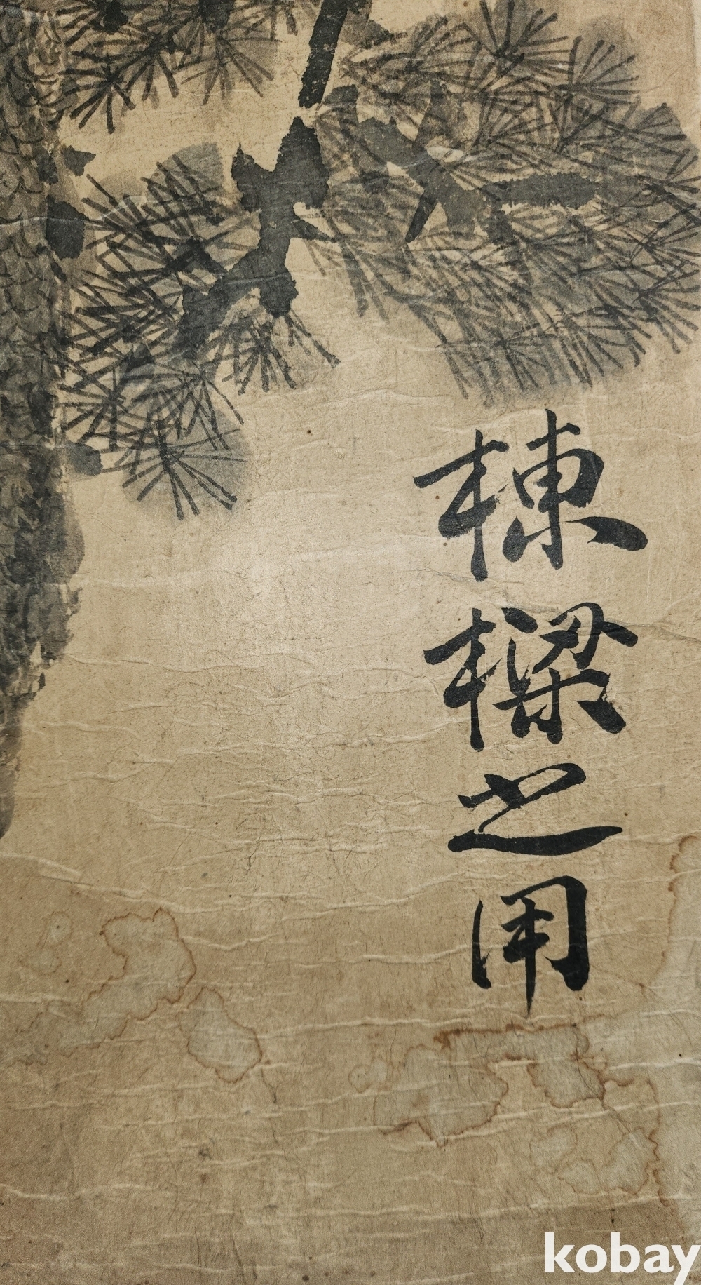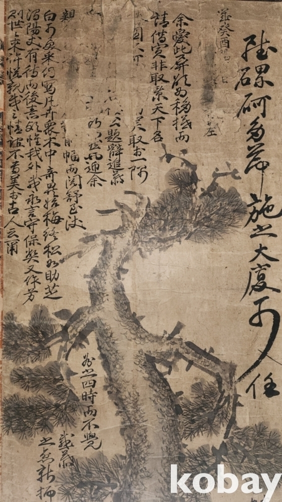 조선시대 장지(將紙)바닥에 수묵화(水墨畵)로 소나무(松) 그림입니다,