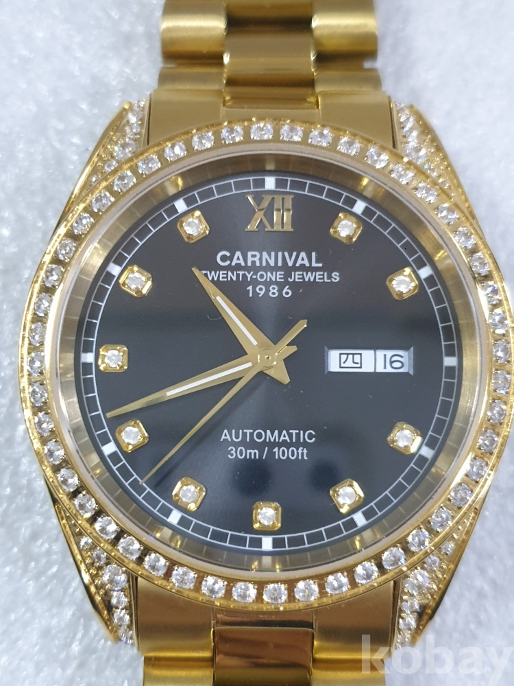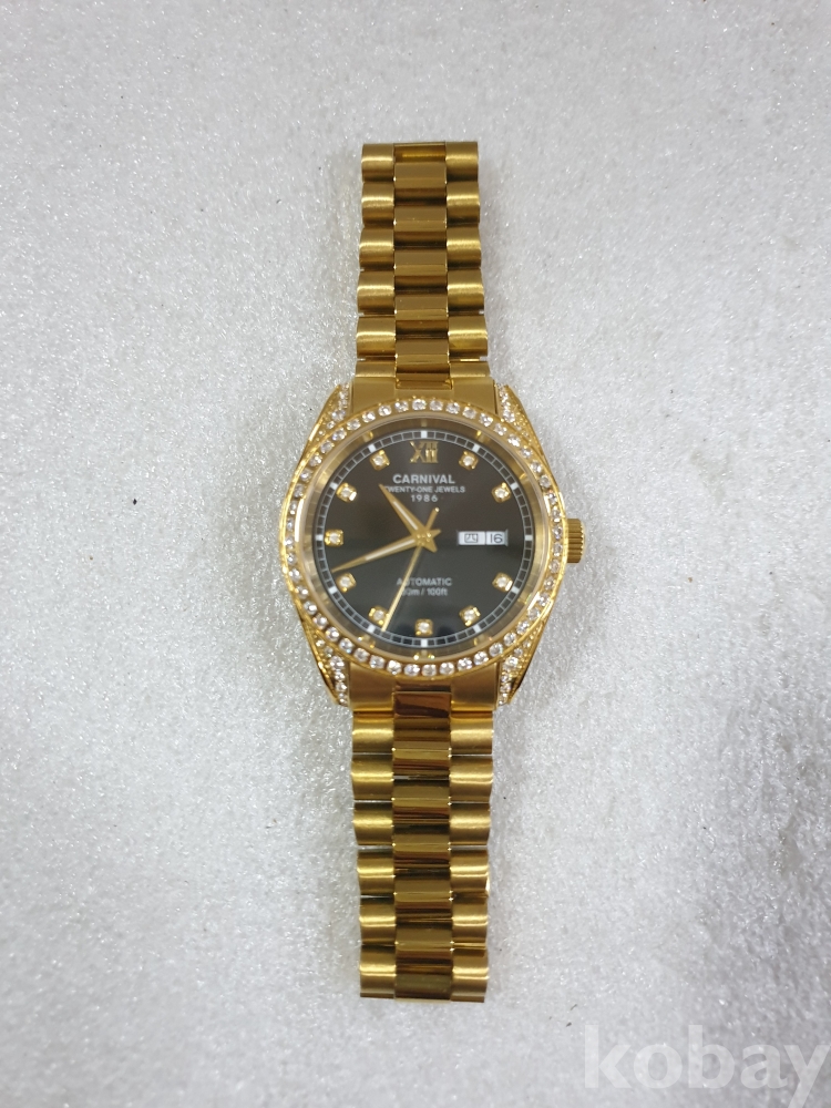 {천원경매} 4-0039 카니발 큐빅 골드시계(정품확인불가)