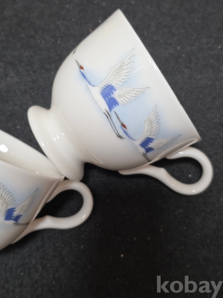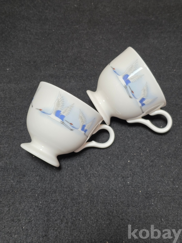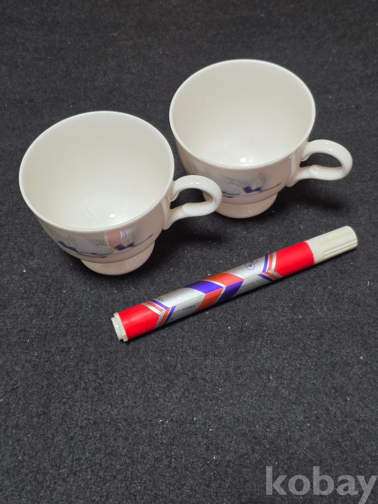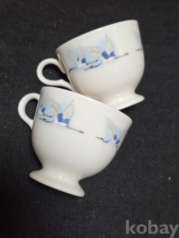 (((빈티지커피잔/도자기커피잔))) 오래전 날아가는 鶴모습이 멋진 커플 도자기 커피잔 (행남사)세월을 지닌 물품입니다