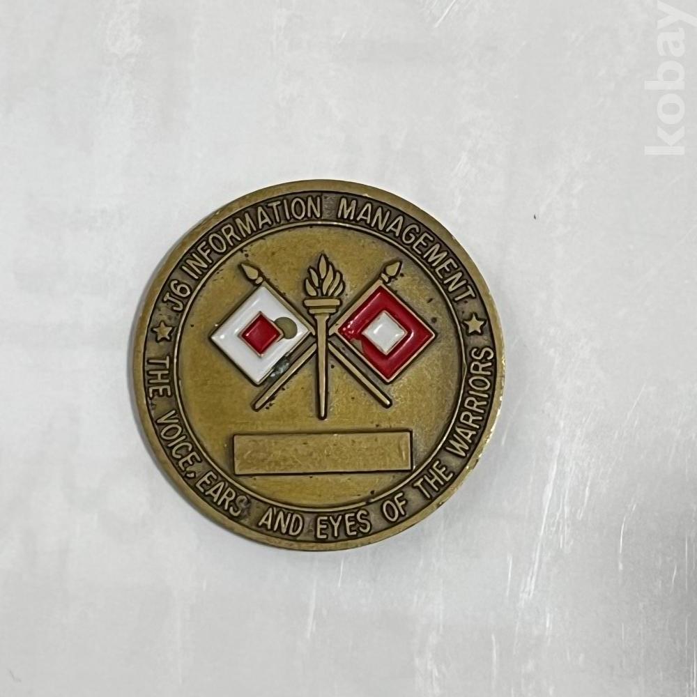 설명: 미 합참(Joint Staff) 산하 정보통신부서(J6)의 코인입니다. 전장에서 통신의 중요성을 강조하는 "전사의 목소리, 귀, 눈"이라는 문구가 특징입니다.