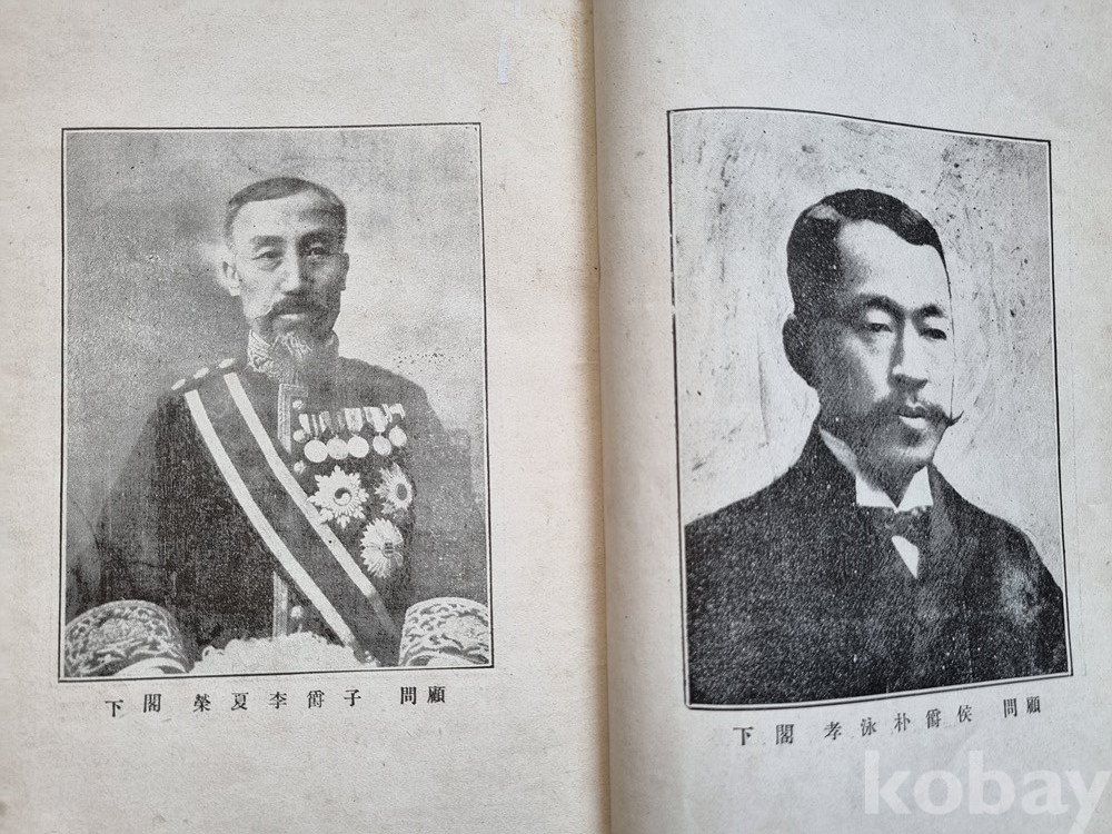 당시 협력 인물인 **후작 박영효(朴泳孝)**와 **자작 이재극(李載克)**의 사진 및 고문 위촉 사실이 확인됩니다.