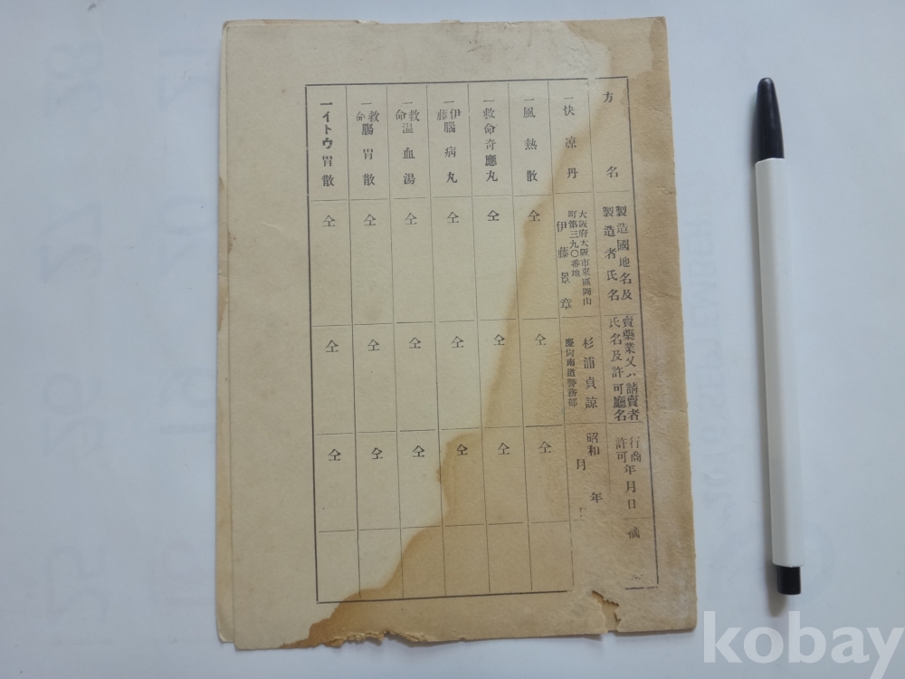 (일제강점기) 매약 행상 허가증 (양식)