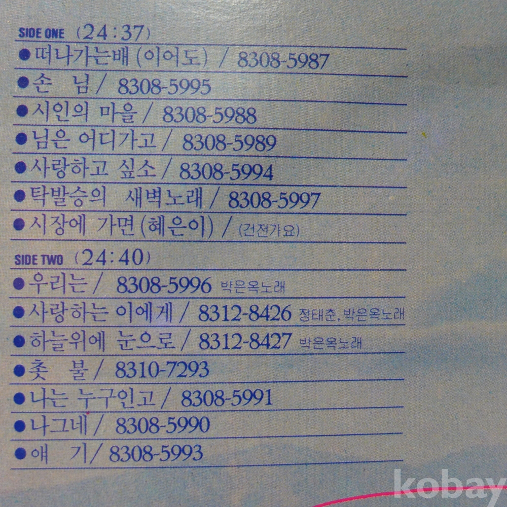 (귀한)LP음반: 정태춘 박은옥의 "떠나가는 배", " 시인의 마을"등 수록앨범