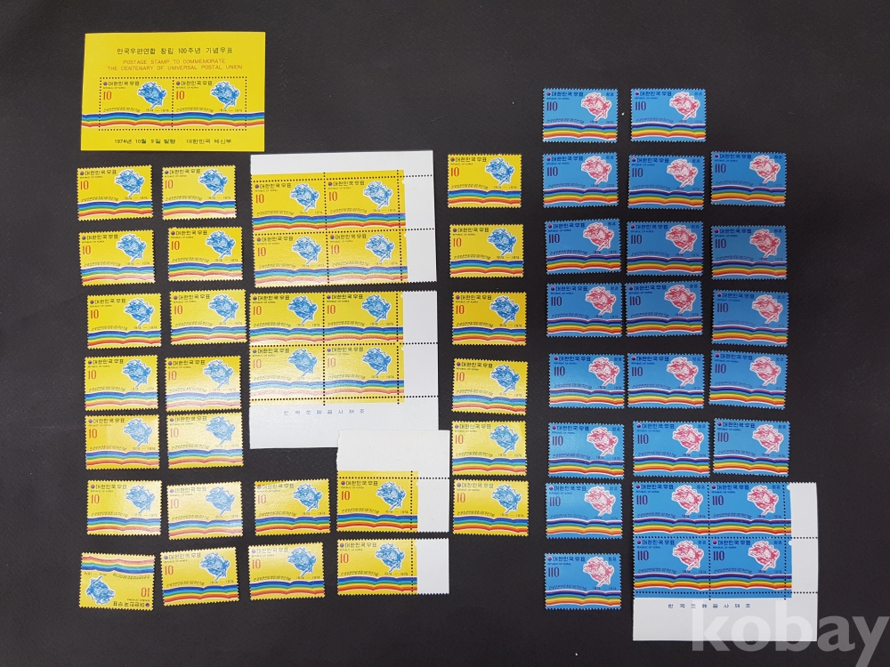 대한민국 우표-만국우편연합 창립 100주년 기념 1874-1974/1974/약 56매