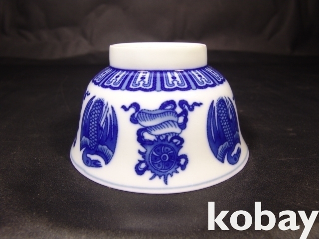 발색좋은 청화로 독수리문등을 시문한 기물로