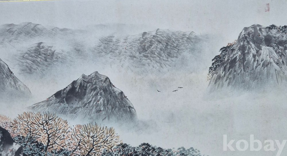 실력파 유명화가 철산 이정훈'화백님 수작 추경 산수화'이오니 작품 이미지상 수결 및 낙관'등 두루 잘