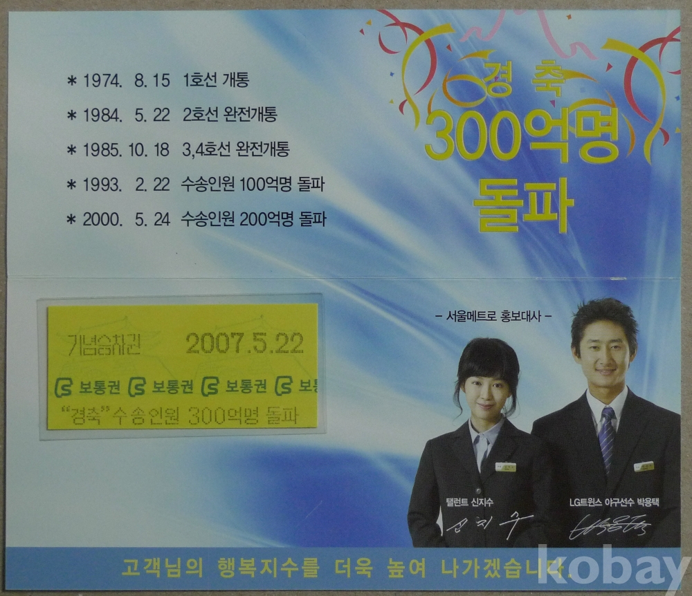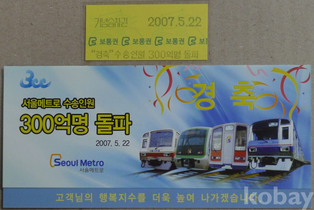 2007년 서울지하철 수송 인원 300억명 돌파 기념 승차권