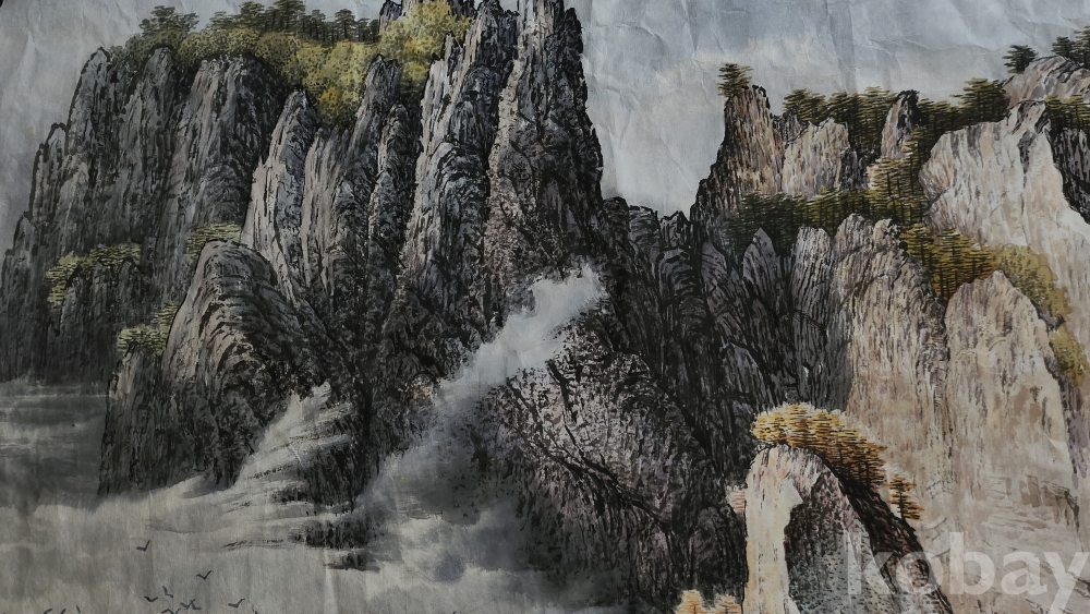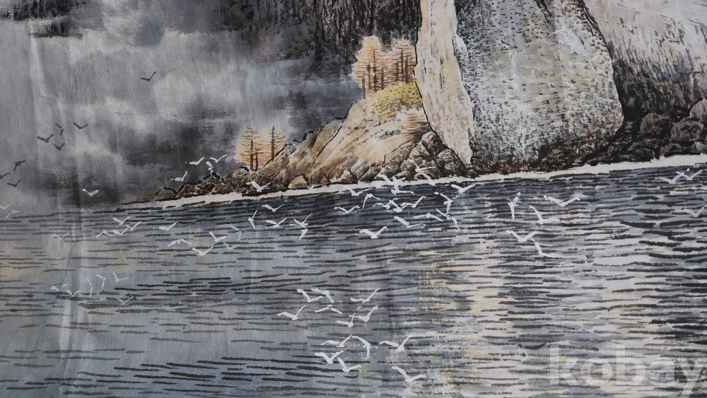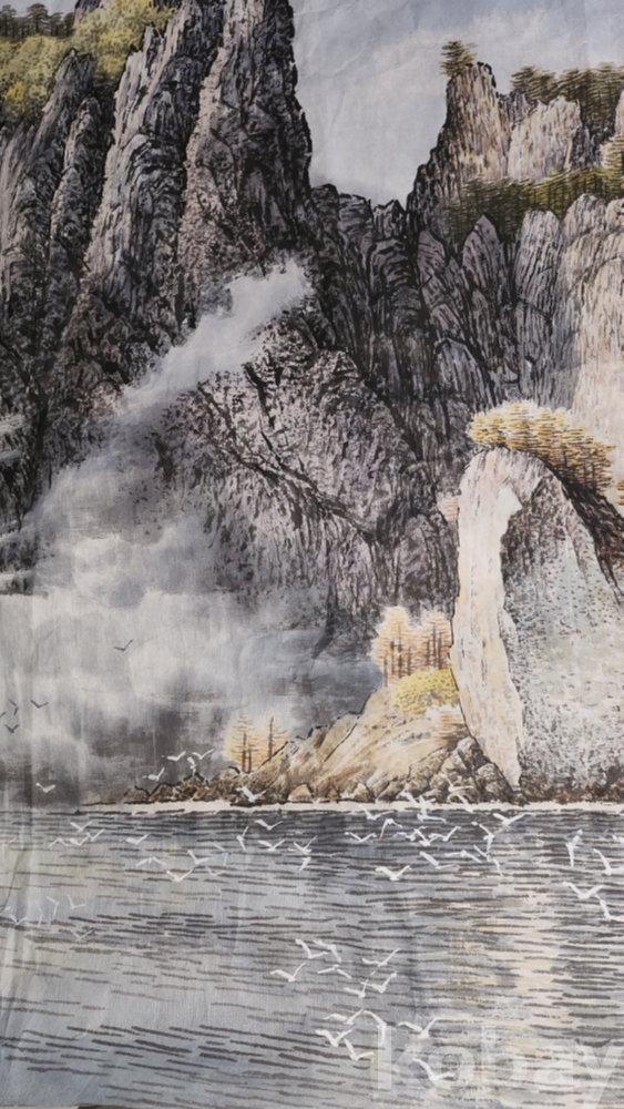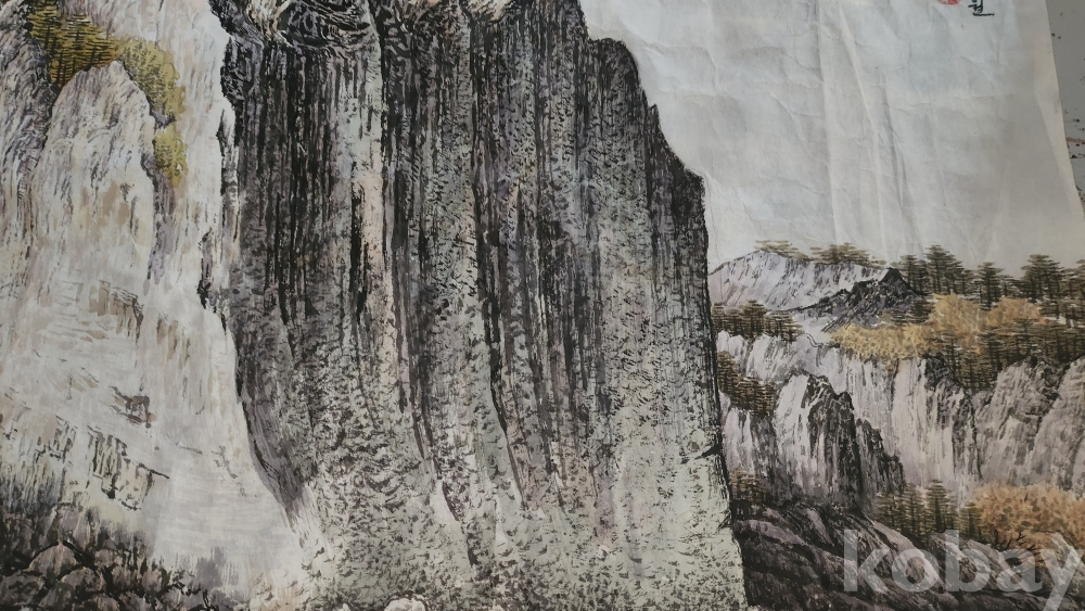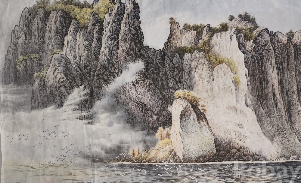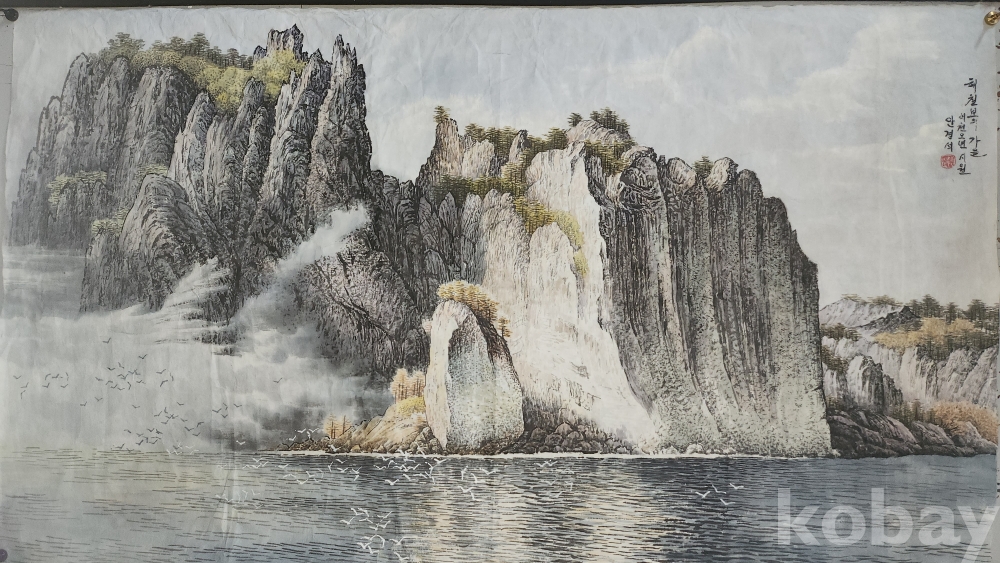 북한 유명화가 안경석 作 "해칠보의 가을"종이에 채색한 그림입니다,