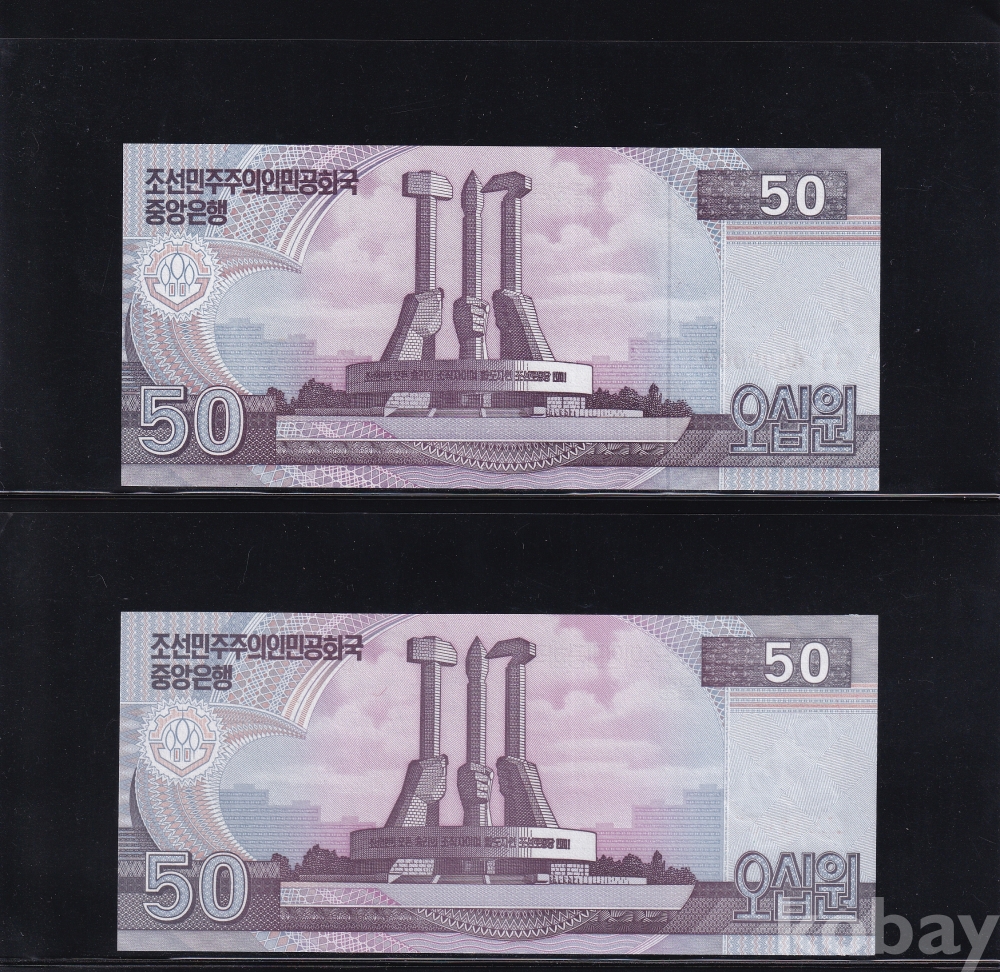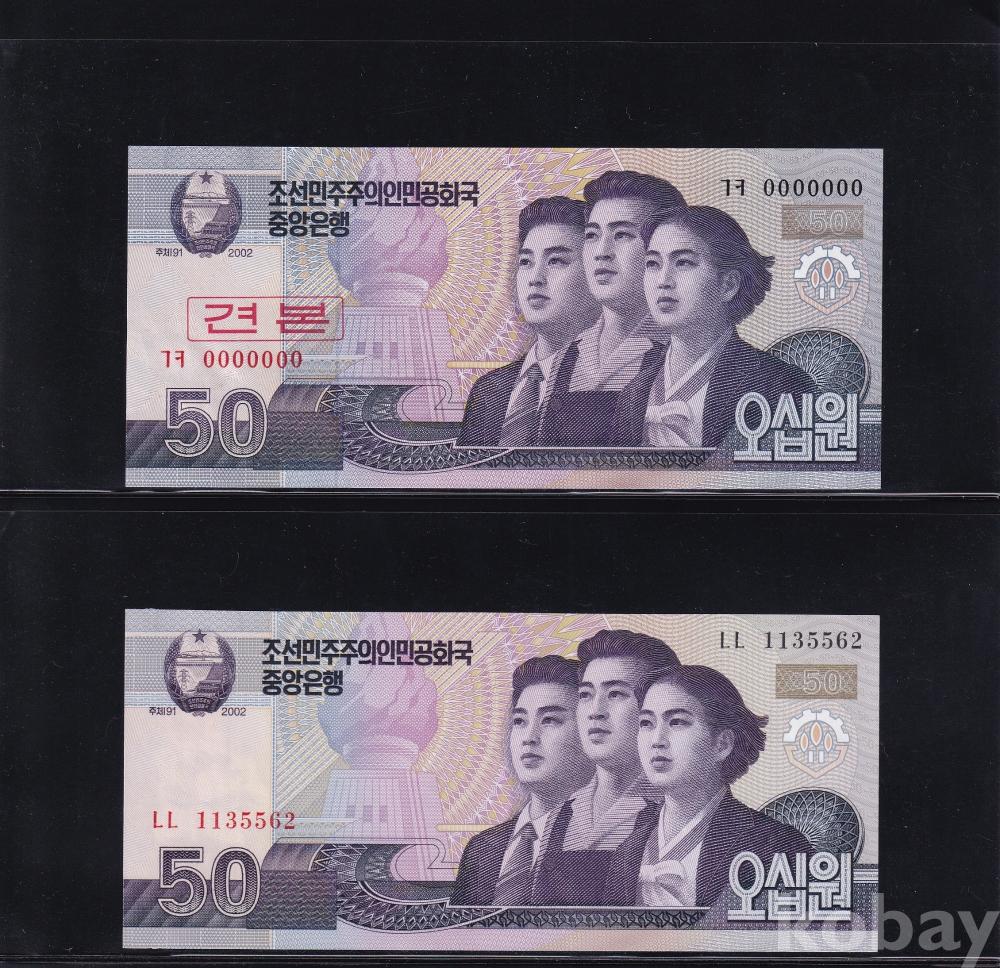 - 윗동네 2002년 오십원 000 견본 / 오십원 통용권 미사용 지폐 - 2장 일괄