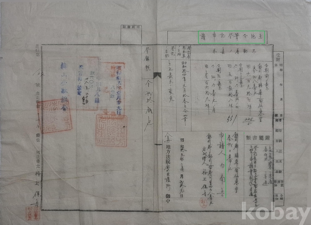 ◈ 소화 15년(1940)에 서천군 시초면 선동리에 사는 백남길(白南吉)이 대리인을 통해