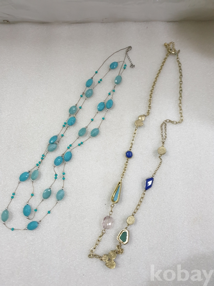 {천원경매}3-1914 블루 패션 목걸이 2개 (45-77cm)반사이즈