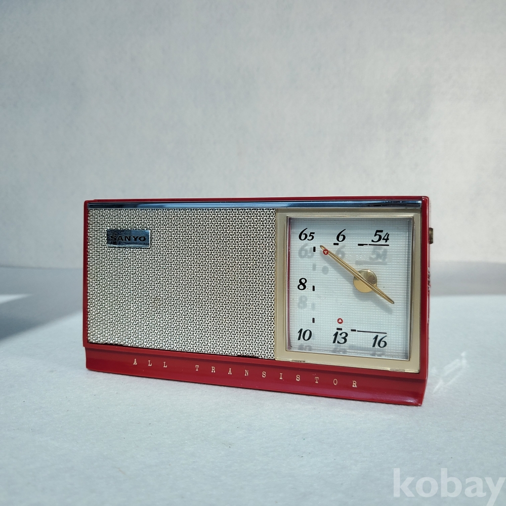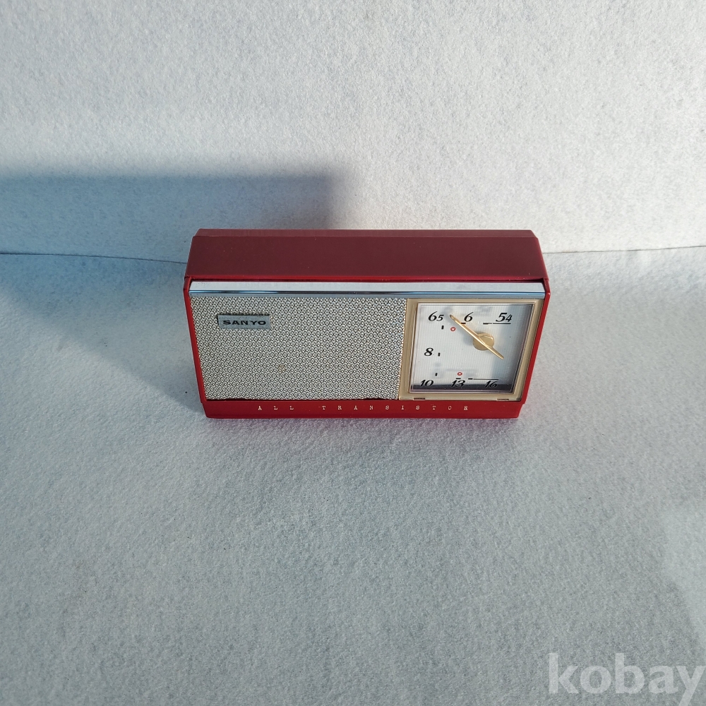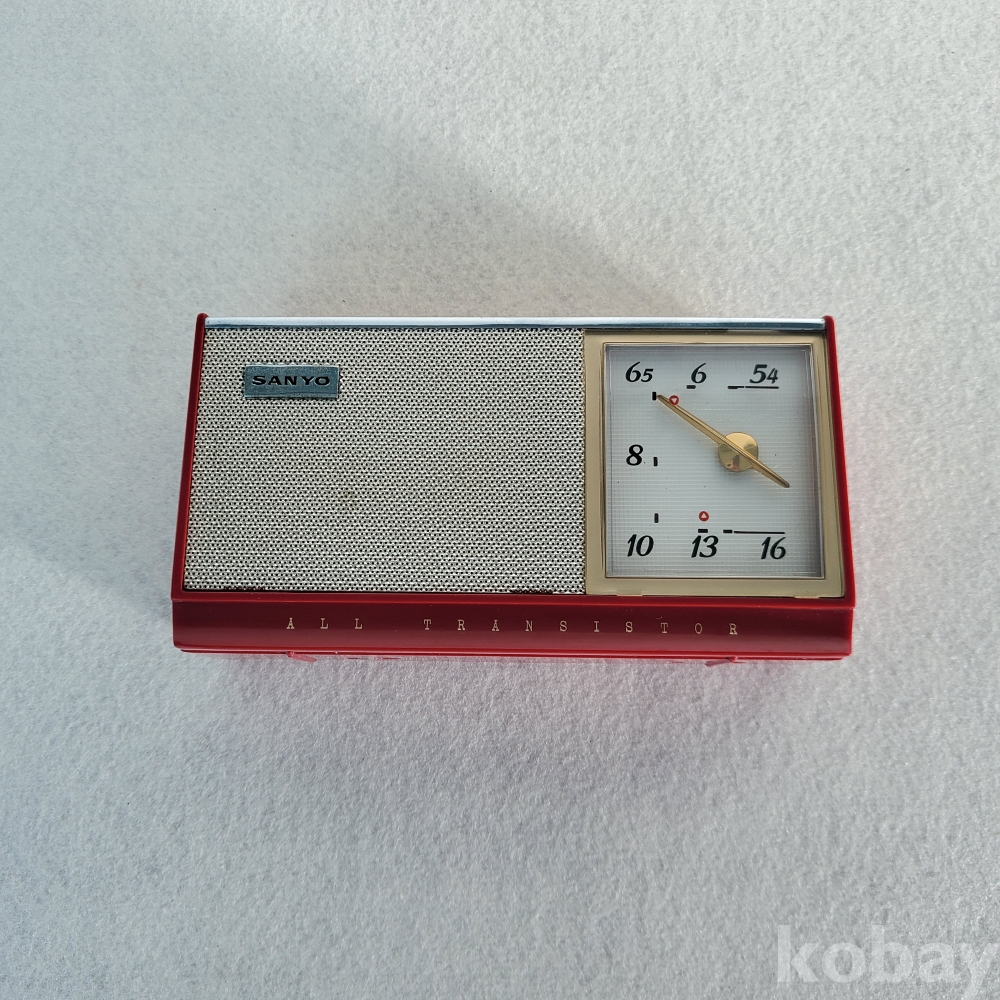 이 제품은 당시 전 세계 소형 전자기기 시장에서 독보적인 기술력을 과시하던 산요가 제작한 6-트랜지스터(6-TRANSISTOR) 휴대용 라디오입니다. 단정하고 기품 있는 본체 실루엣과 전면을 채우고 있는 스피커 그릴, 그리고 우측에 직관적으로 배치된 튜닝 다이얼의 세련된 조화는 훗날 금성사 TP-601의 디자인과 내부 설계에 지대한 영감을 주었습니다. 당시 최첨단 휴대용 기기가 갖춰야 할 모던하고 실용적인 산업 디자인의 정수를 여과 없이 보여주고 있습니다.