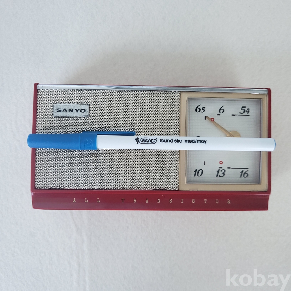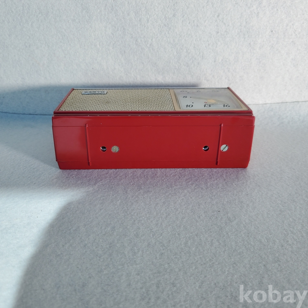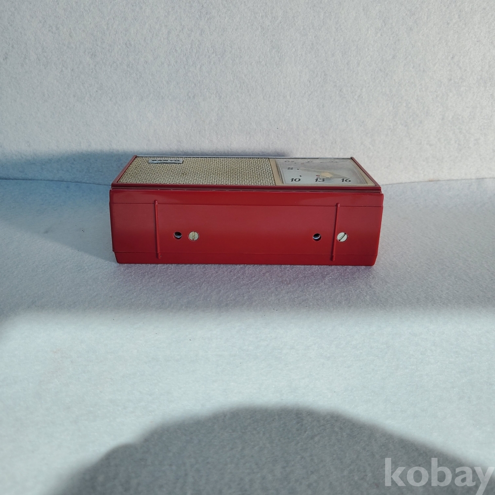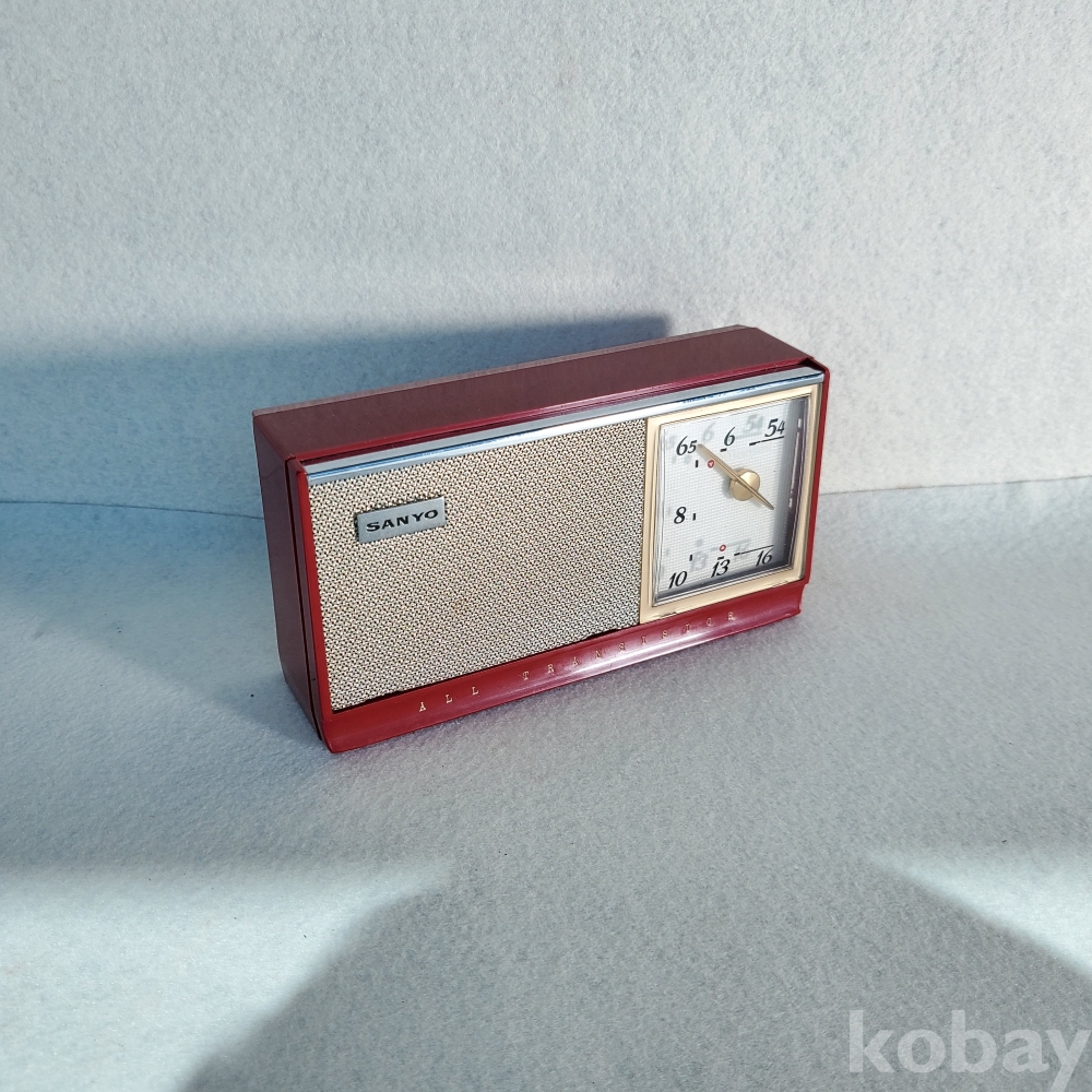 이 제품은 당시 전 세계 소형 전자기기 시장에서 독보적인 기술력을 과시하던 산요가 제작한 6-트랜지스터(6-TRANSISTOR) 휴대용 라디오입니다. 단정하고 기품 있는 본체 실루엣과 전면을 채우고 있는 스피커 그릴, 그리고 우측에 직관적으로 배치된 튜닝 다이얼의 세련된 조화는 훗날 금성사 TP-601의 디자인과 내부 설계에 지대한 영감을 주었습니다. 당시 최첨단 휴대용 기기가 갖춰야 할 모던하고 실용적인 산업 디자인의 정수를 여과 없이 보여주고 있습니다.