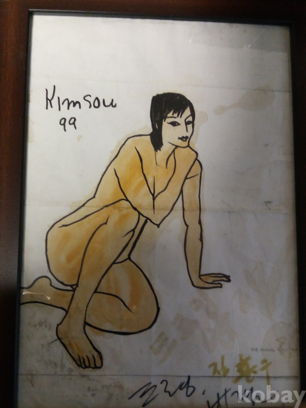 -액자는 간이액자, 상태는 세월감이 있고 접힌자욱이 있지만 그림의 내용이 훼손되거나 하지는 않았음