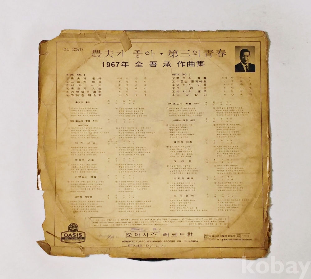 | 자켓상태 | P : 물에 젖거나 심한 훼손 | 음반상태 | VG : 생활 기스 다수, 가벼운 노이즈 존재 | 발매정보 | 알수없음 | 가사지여부 | 무 |
