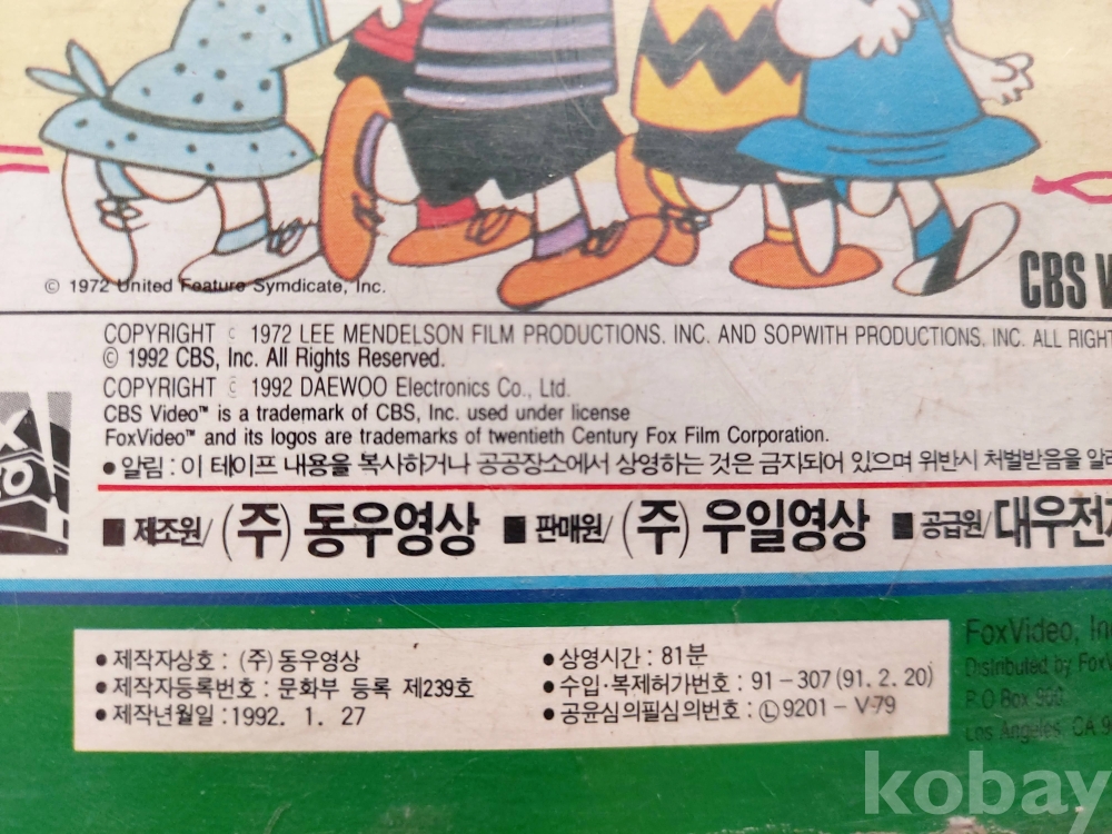 < 애니매이션 비디오테잎 [내사랑 스누피]>