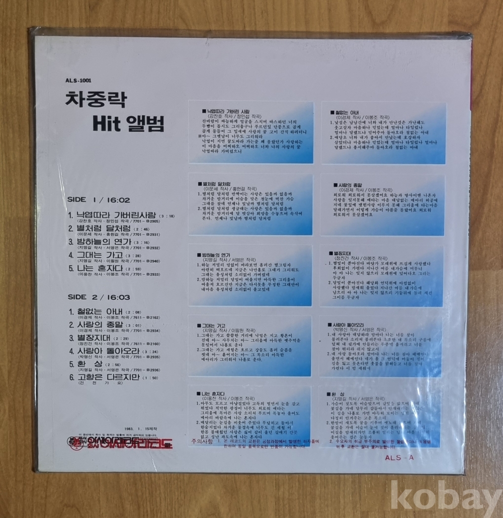 | 자켓상태 | SS : 미개봉, 손상 없음 | 음반상태 | SS : 미개봉 상태 | 발매정보 | 초반 | 가사지여부 | 유 |