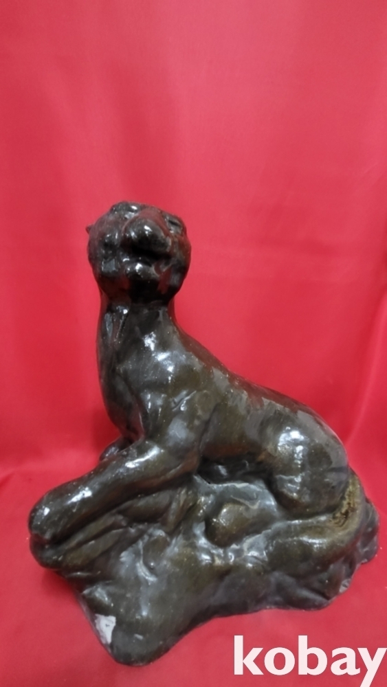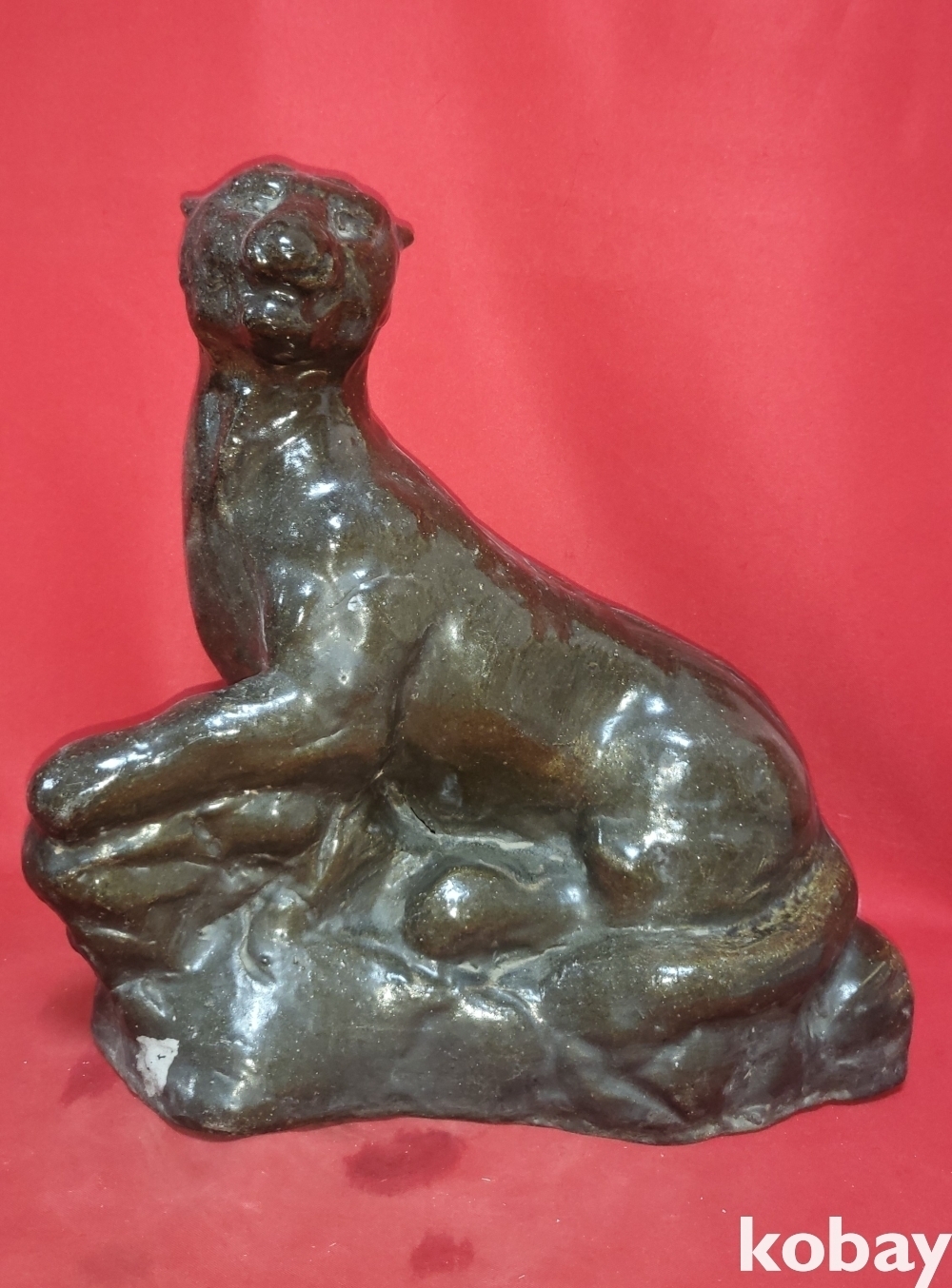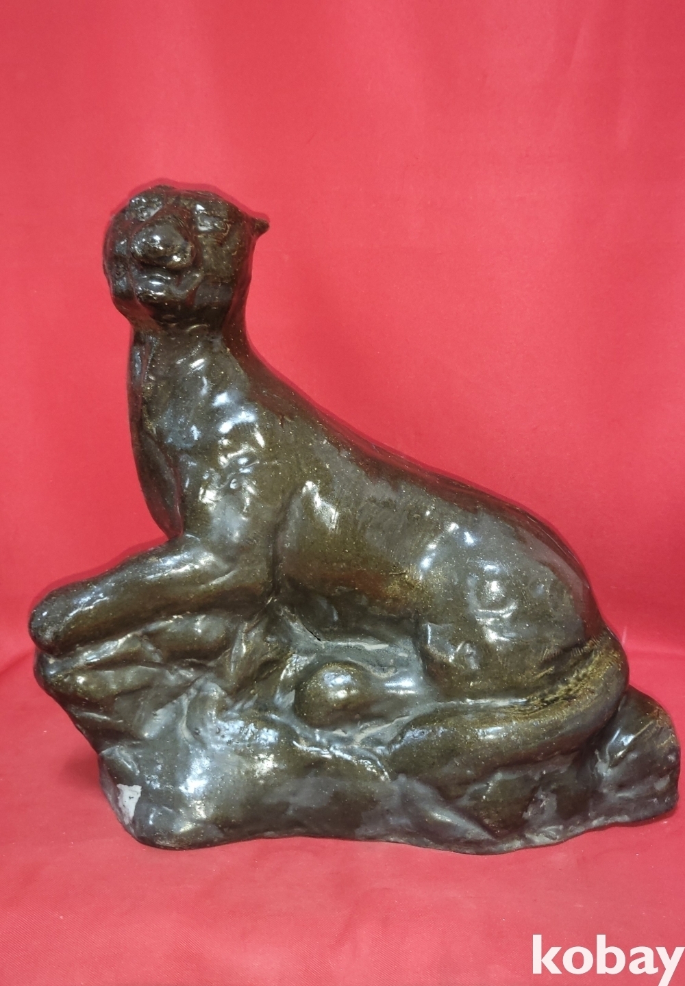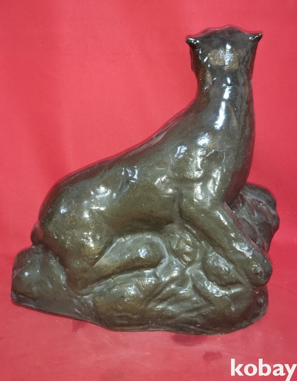 도자기로 만든 괴석에 앉아있는 호랑이 입니다,