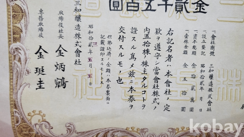 본 주식증서는 조선내 일본계 또는 합작회사에서 발행된 것으로 사료됩니다,