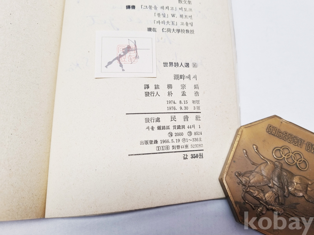 [묻지마 천원 경매] YBK19 민음사 호반에 서 윌리엄 워즈워스 (세계시인선 16) 1976