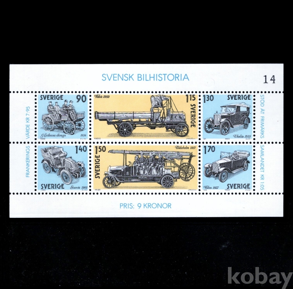 스웨덴) 1980년 스웨덴 자동차 역사(구스타프 에릭손의 마차,바비스 1909, 툴린 1923, 스카니아 1903, 티다홀름 1917, 볼보 1927)