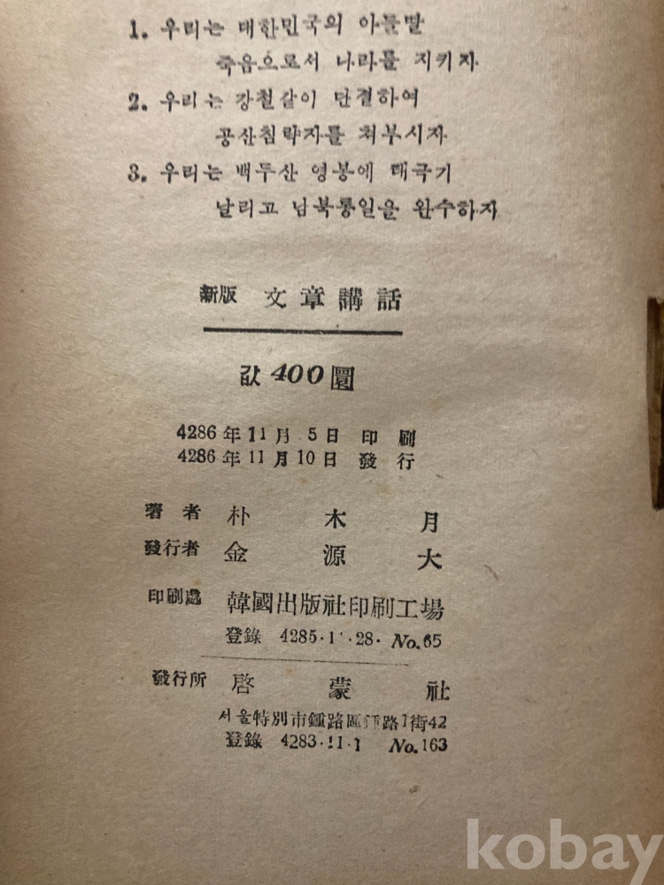 • 단기 4286년(1953년), 6.25 전쟁 휴전 직후 서울 종로구 계몽사에서 발행된 귀한 전후 초기 판본입니다.