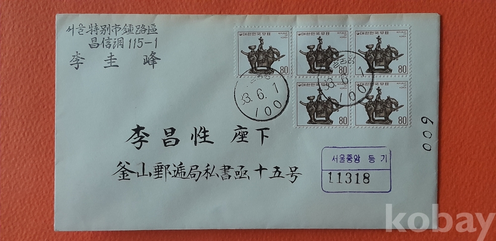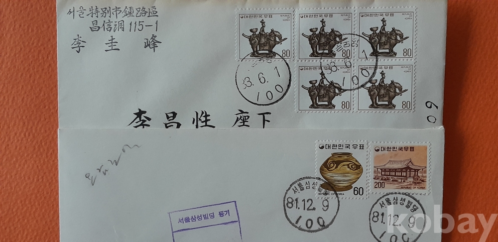 서울중앙(83. 6. 1.) 소인 등 실체봉피 2종 입니다.