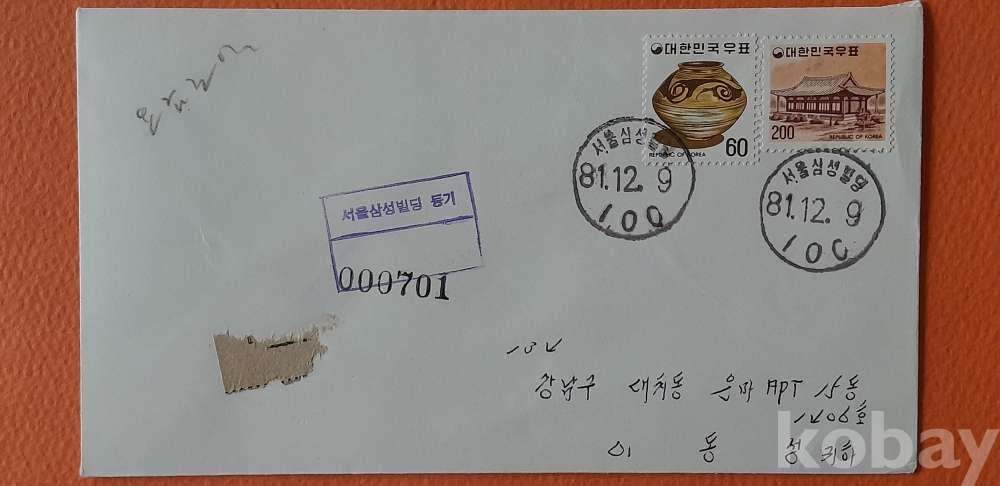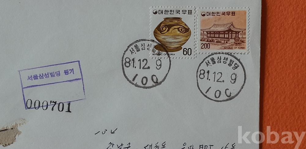 두 번째 봉피는 서울삼성빌딩 소인이 찍혀 있습니다.