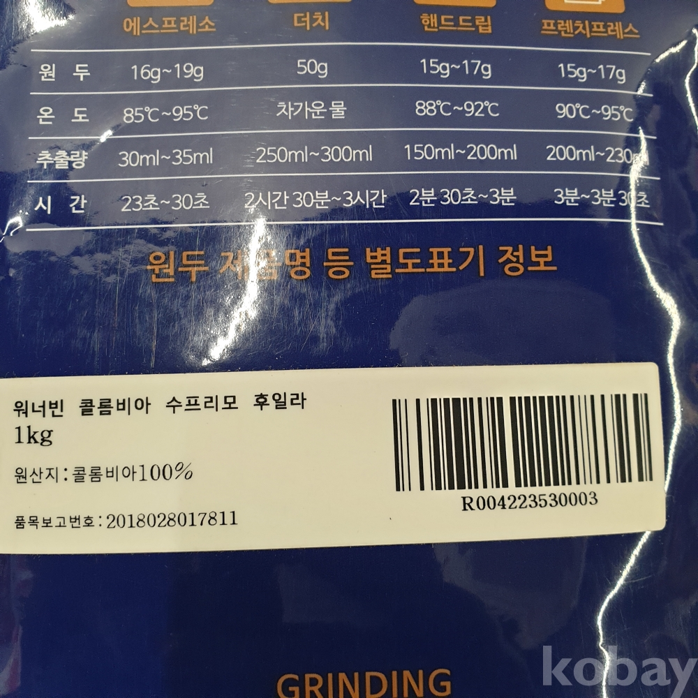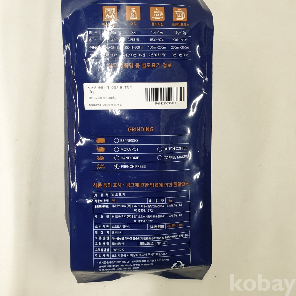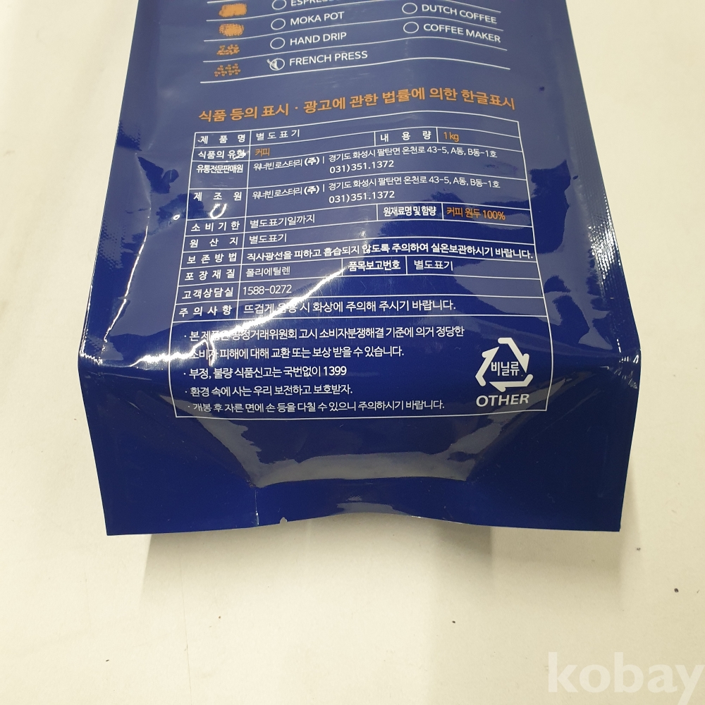 [*천원행복*] J - 3 - 0222 워너빈 1KG (프렌치프레스, 미개봉)