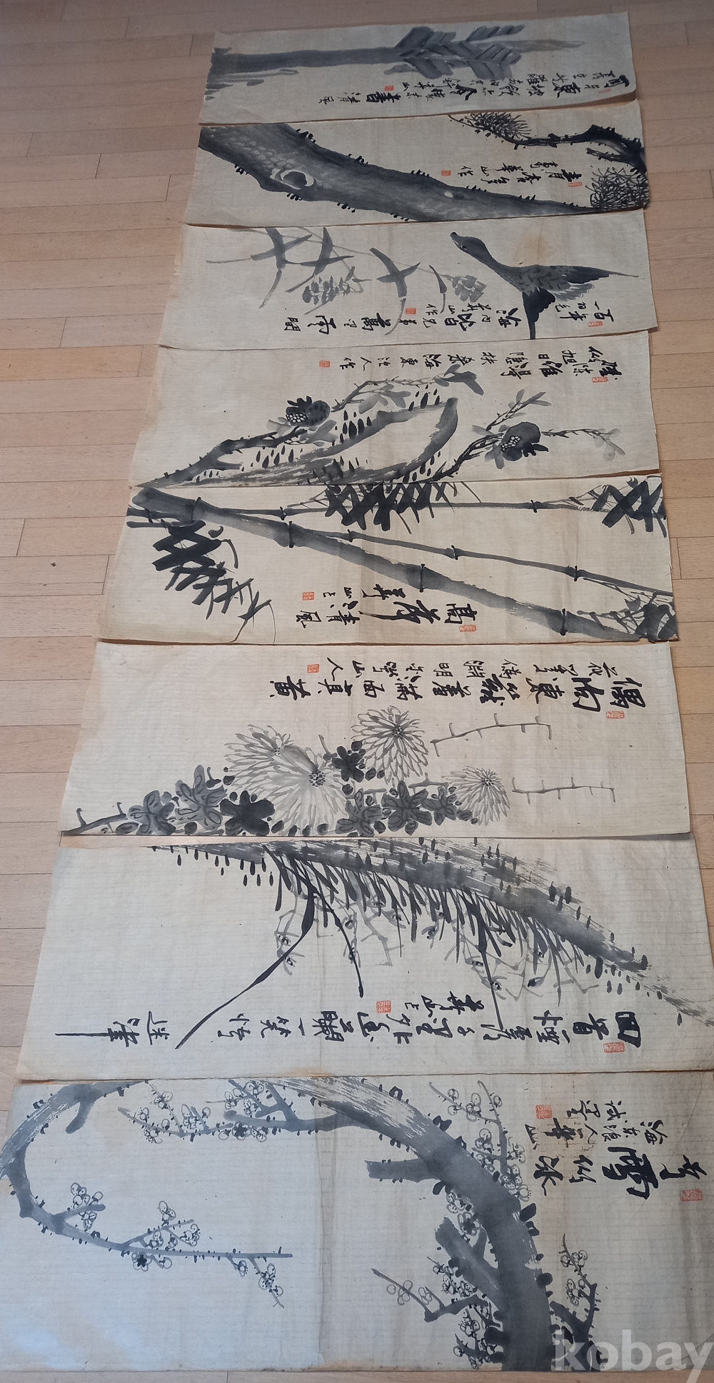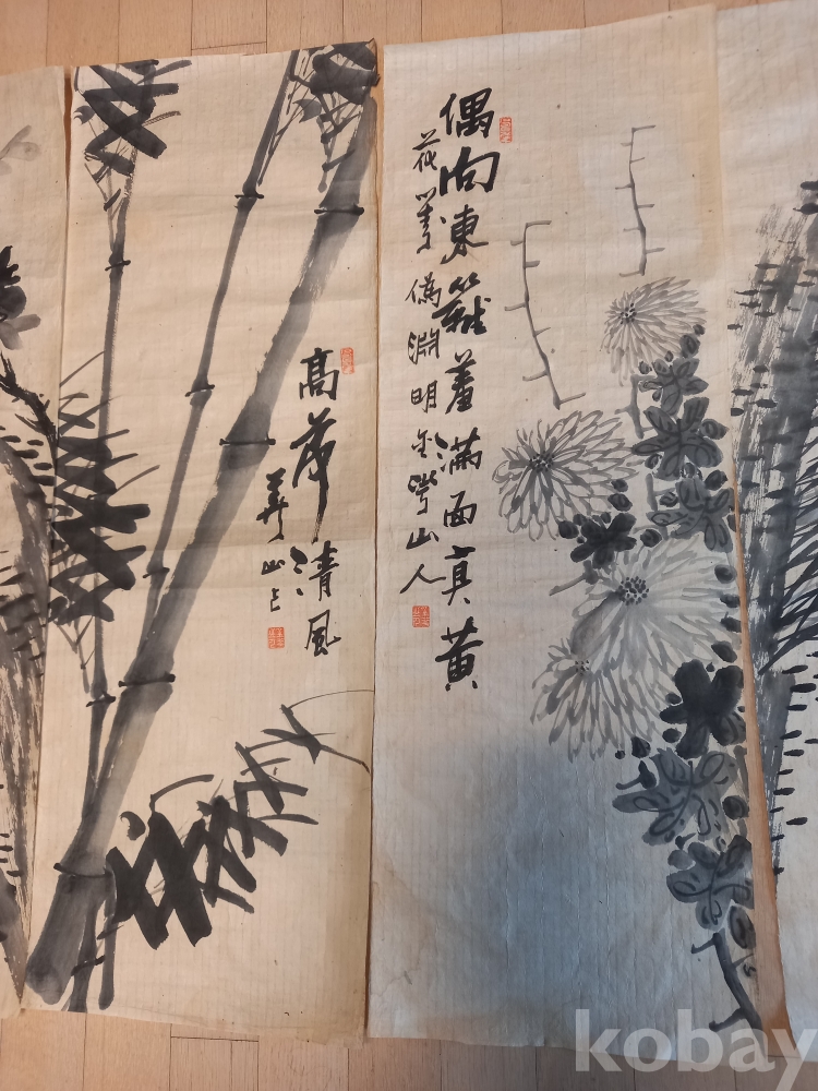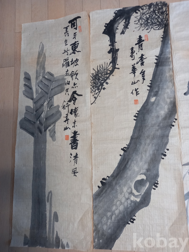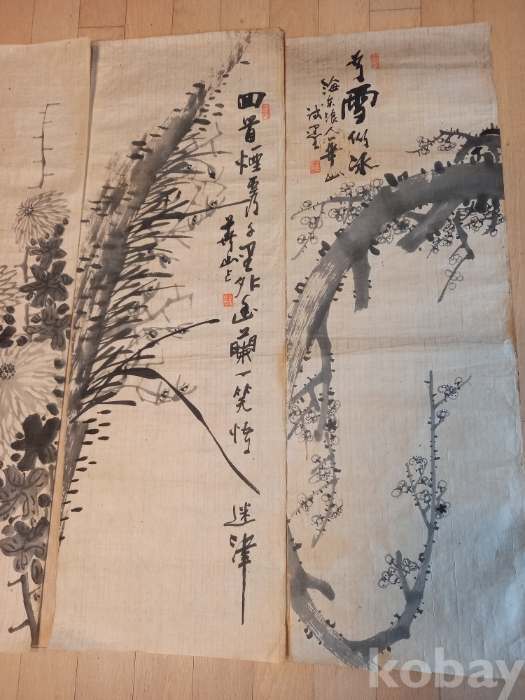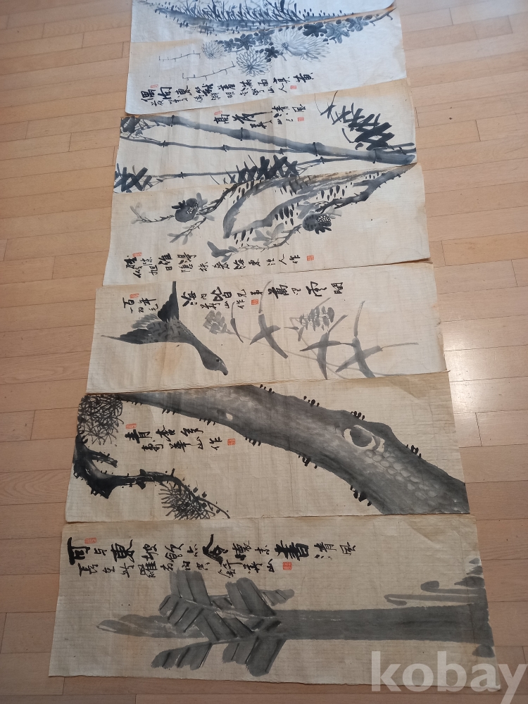 상태 미사용 한지 화산 김 일 선생은 해동랑인 금석산방 의 별호도 쓰신 독립운동가 화가 십니다 네이버에검새하시면더자세이 보실수 있습니다 매.난.국.죽.과 파초.솔.석류.노안을 그리셨네요 작품 마다 간결하고 품위가느껴지는 휼륭한 작품입니다