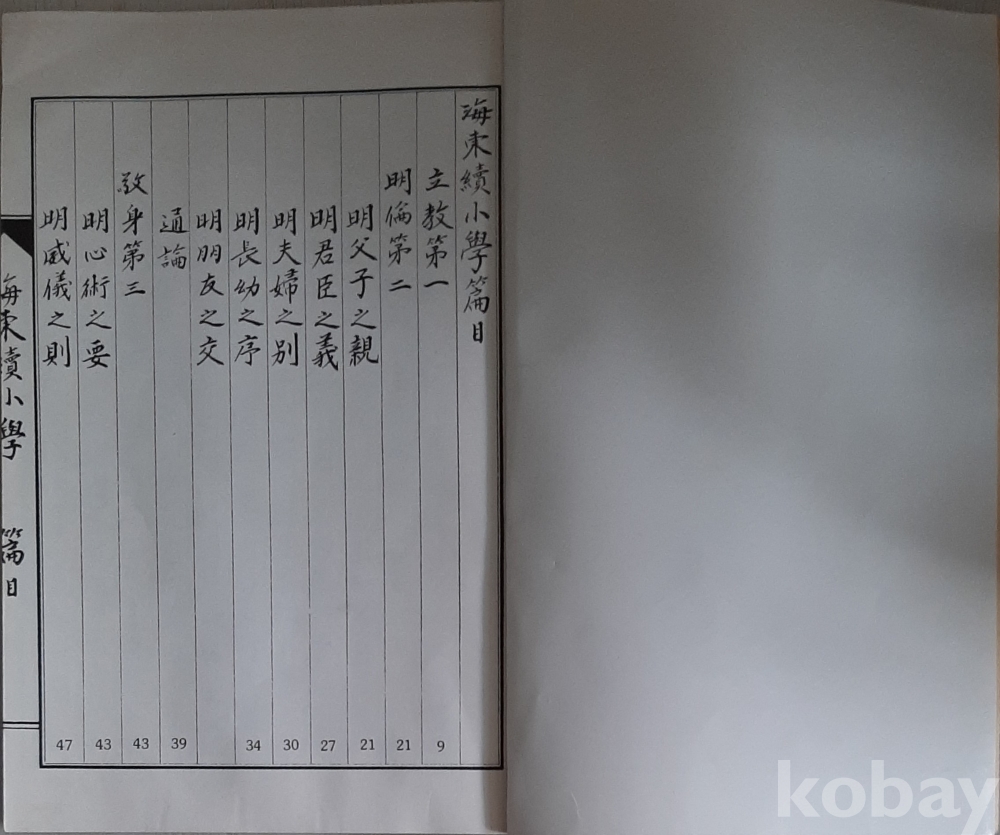 우리나라 선인들의 언행을 내.외편으로 분류하였는데, 내편에는 입교, 명륜, 경신, 계고로 구성되어 있다. 외편은 희언, 선행사례 등 이들 내용은 우리들이