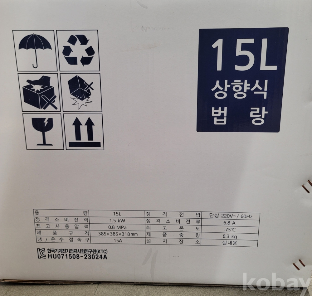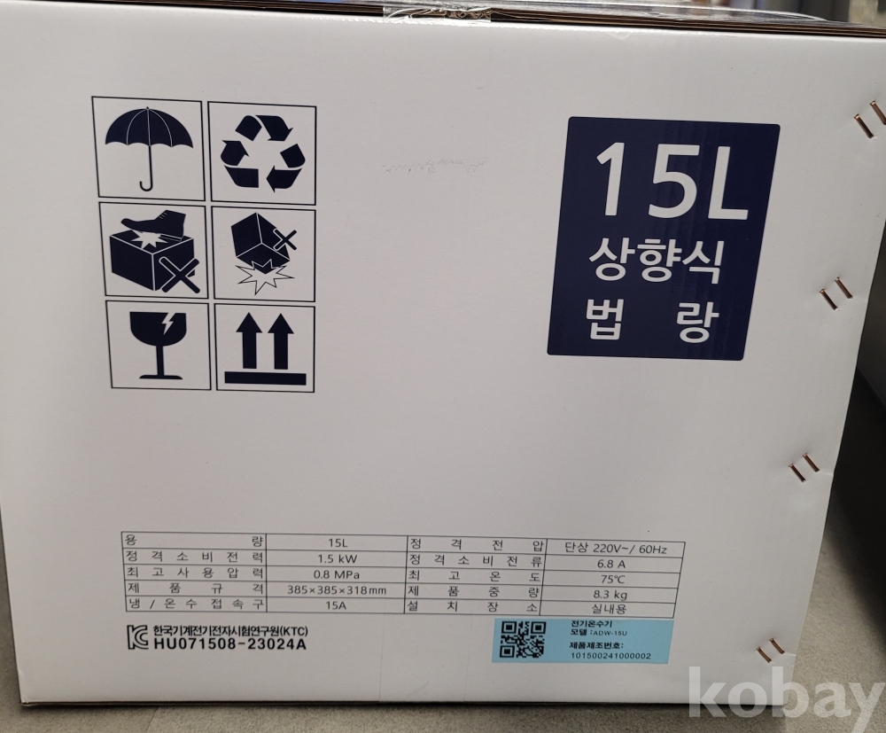[*천원행복*] L - 3 - 0543 대우전기 온수기 15L (모델명 ADN-15U, 미개봉, **합배송 불가**)