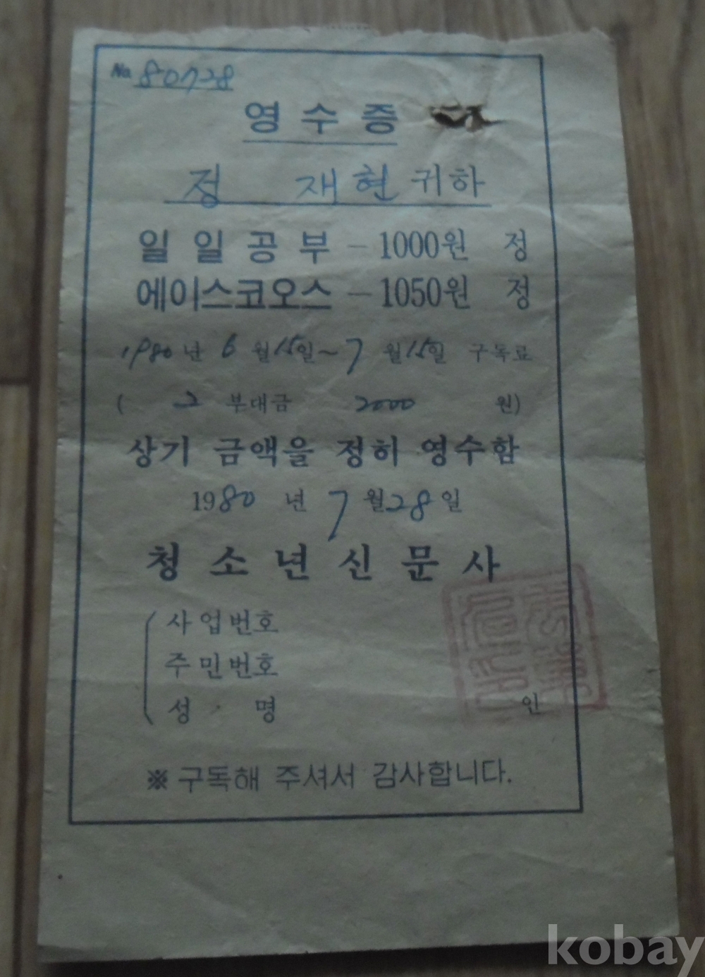 영수증신청 : 수령확인시에 개인소득공제용 또는 사업자회원님의 지출증빙용(세금계산서대체)으로 신청하실 수 있습니다.