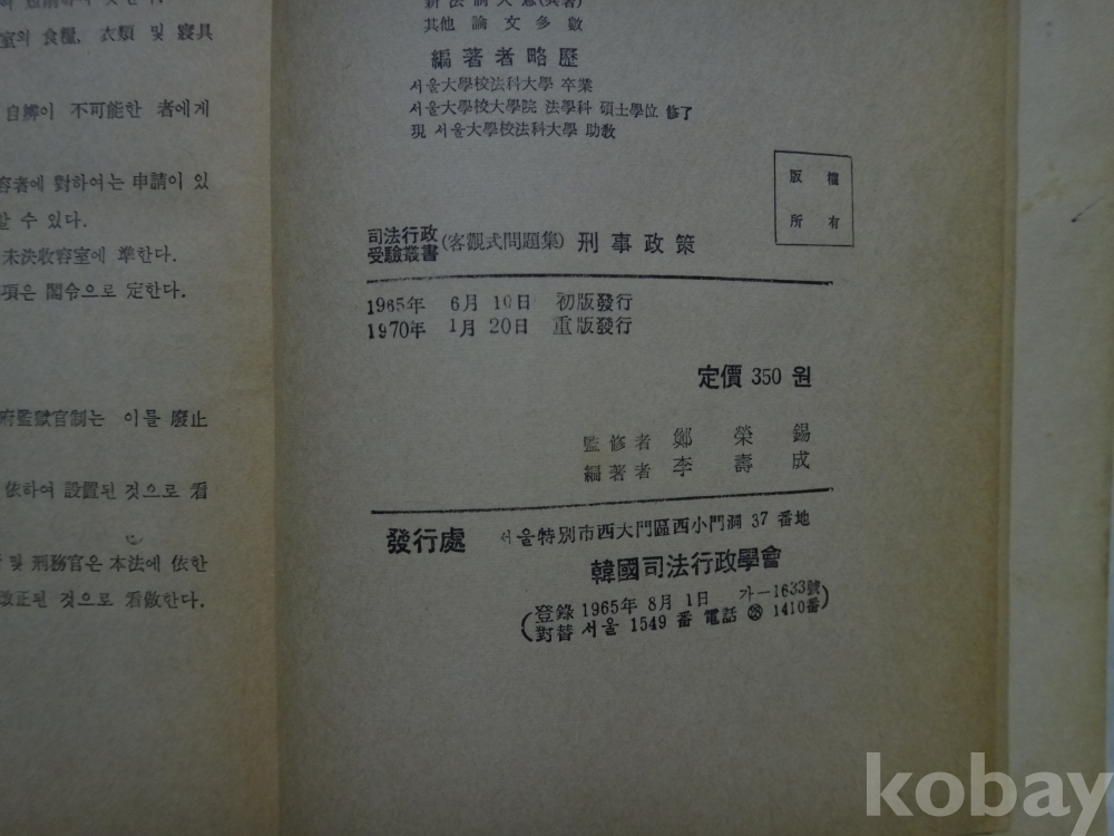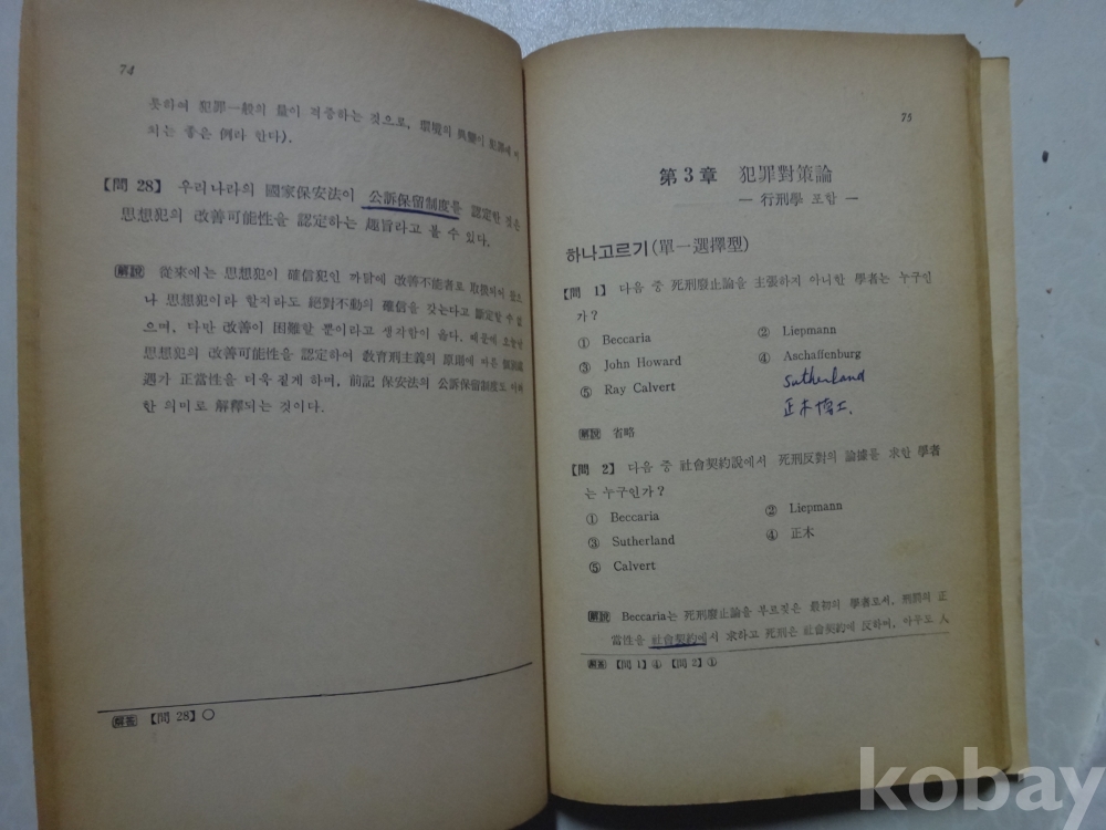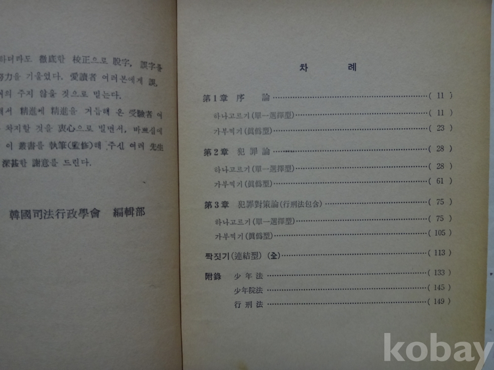 (객관식 문제집) 형사정책 - 행형학 포함 (1970년, 한국사법행정학회)