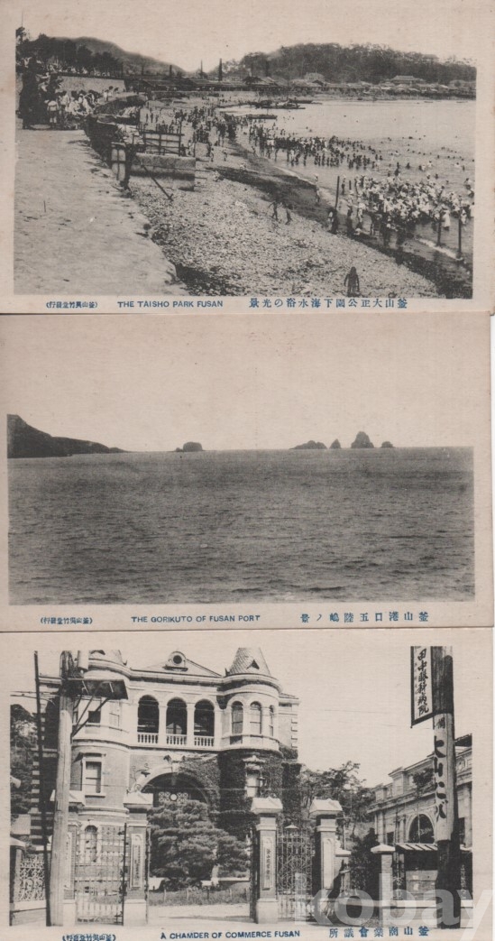 오륙도, 송도, 상공회의소 사진엽서 3매와 피봉