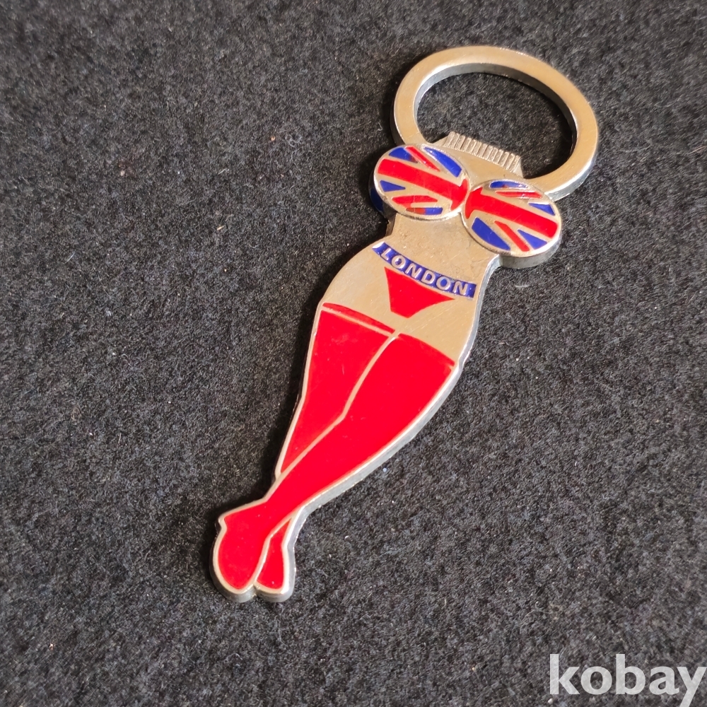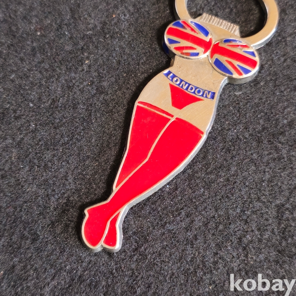 (((관광기념품/오프너))) 오래전 영국 LONDON 관광기념 비키니입은 여인모습 마그네틱부착 금속 오프너