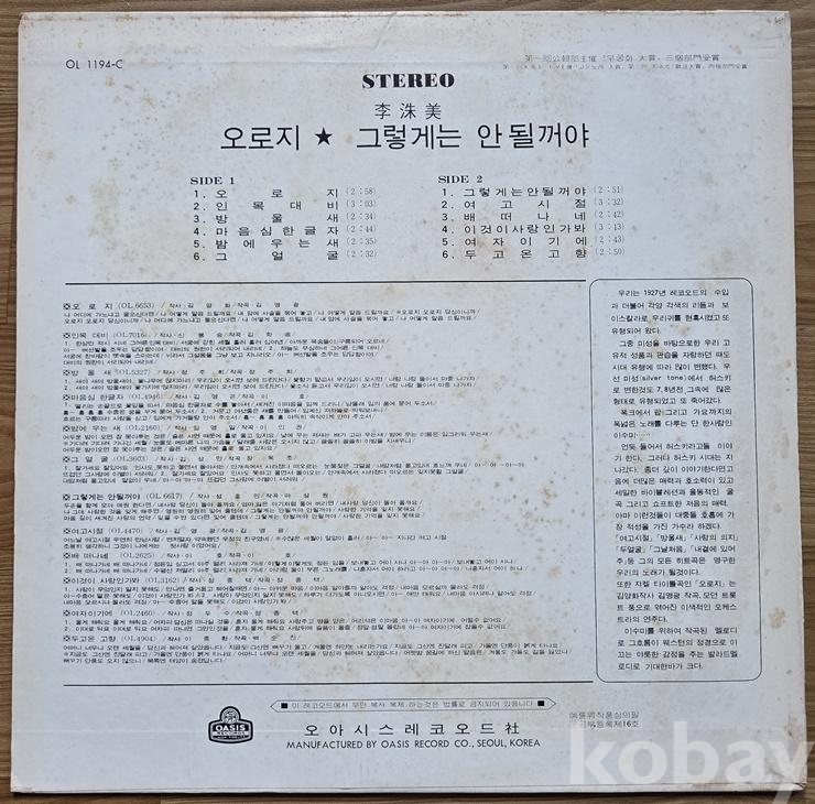 | 자켓상태 | EX : 약간의 마모, 모서리 찢김 존재 | 음반상태 | EX : 재생에 영향 없는 가벼운 기스 존재 | 발매정보 | 초반 | 가사지여부 | 유 |