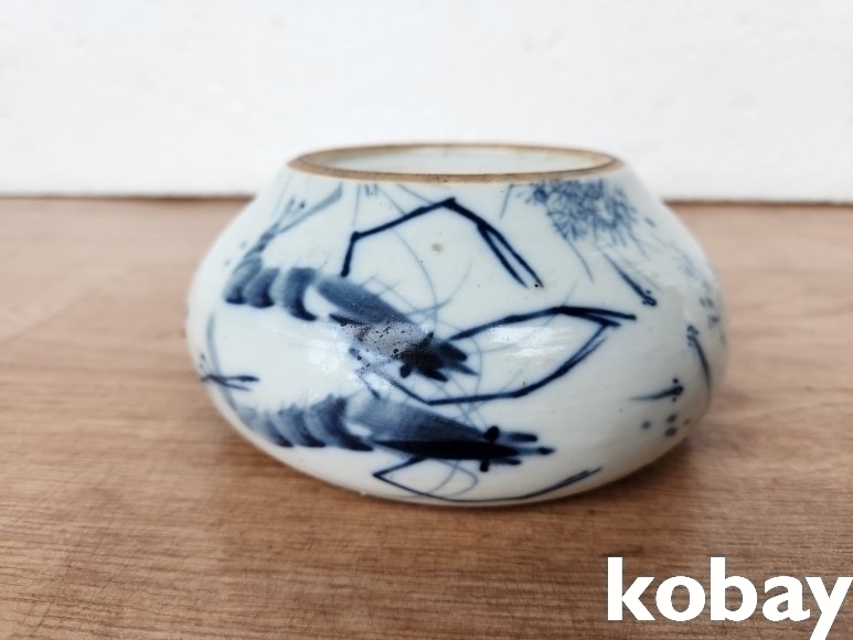 새우 그림 단지형 도자기 입니다.