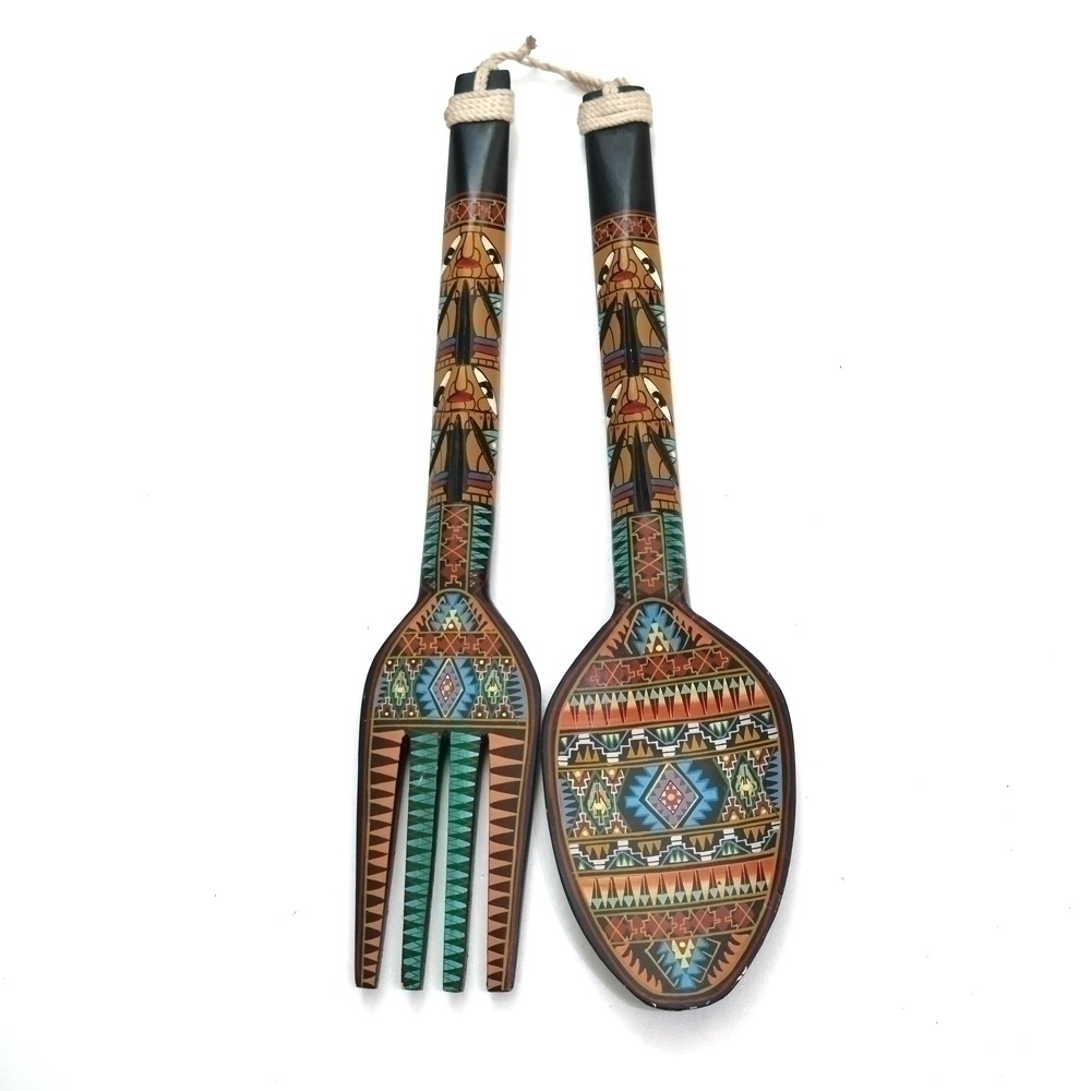 나무로 만들어진 앤틱 장식용 수저 포크 입니다.