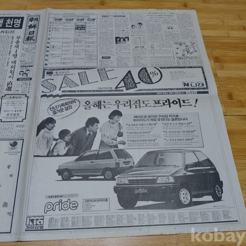 기아자동차 프라이드 승용차 광고 조선일보 88년1월7일 올려드립니다