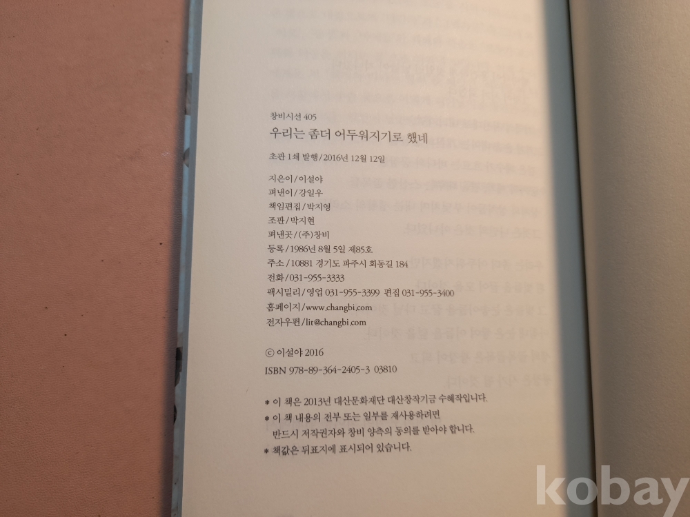 창비시선 * 이선야 시집 우리는 좀더 어두워지기로 했네