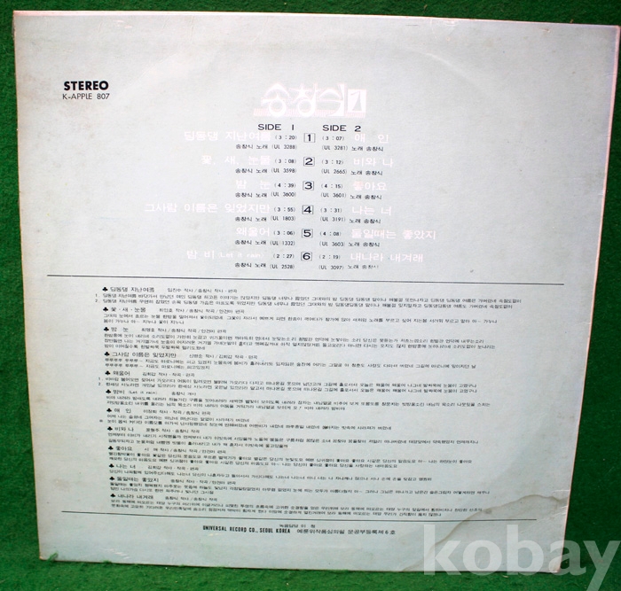 음반의 상태 : A+~A (깨끗하나 2면에 감상에 지장이 없는 짧고 연한 스크래치 2곳)