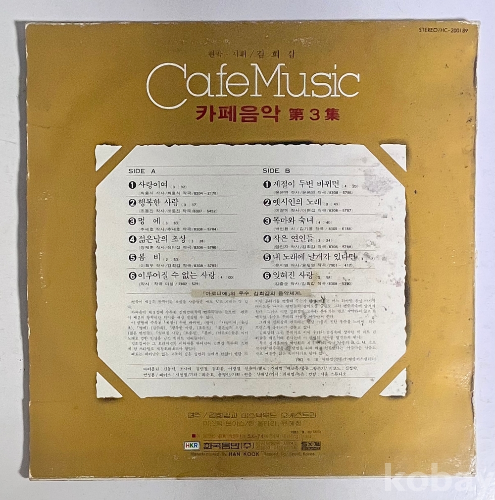 Cafe Music Vol.3 김희갑 미스틱무드 LP판입니다.