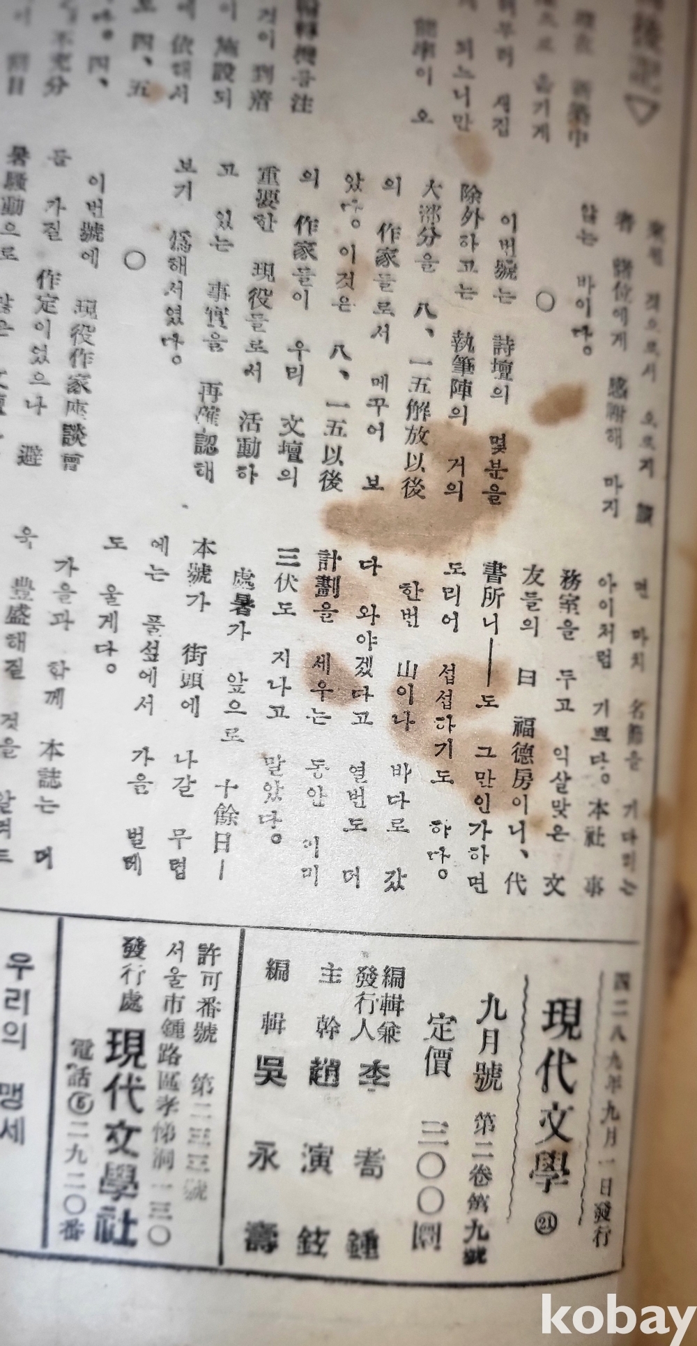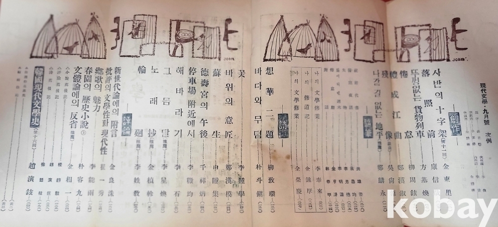 화가 이준 표지화 그림이 함께하는 "현대뮨학" 1956년 발행입니다,