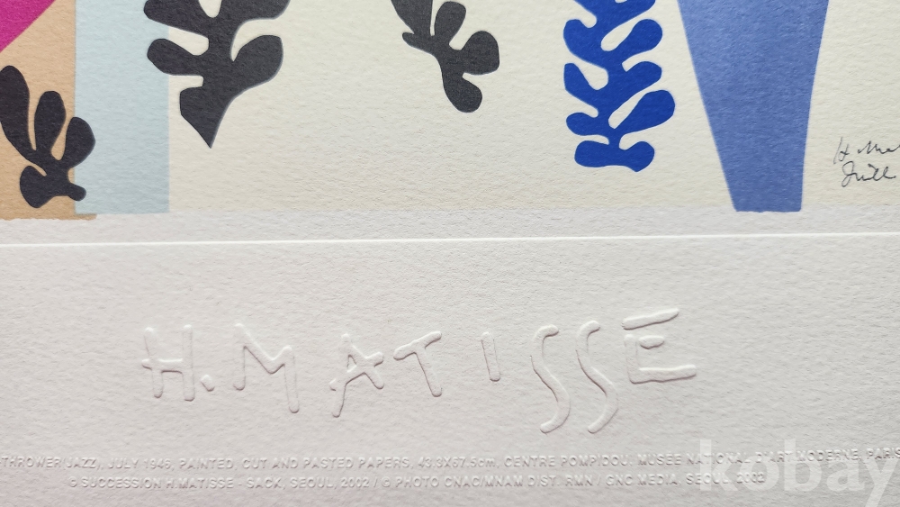 프랑스 유명화가  앙리 마티스(Henri Matisse)   압인(壓印) 판화입니다,