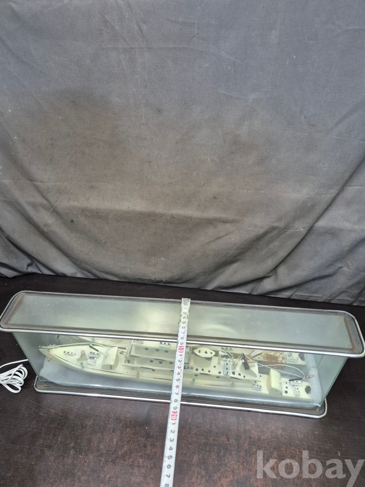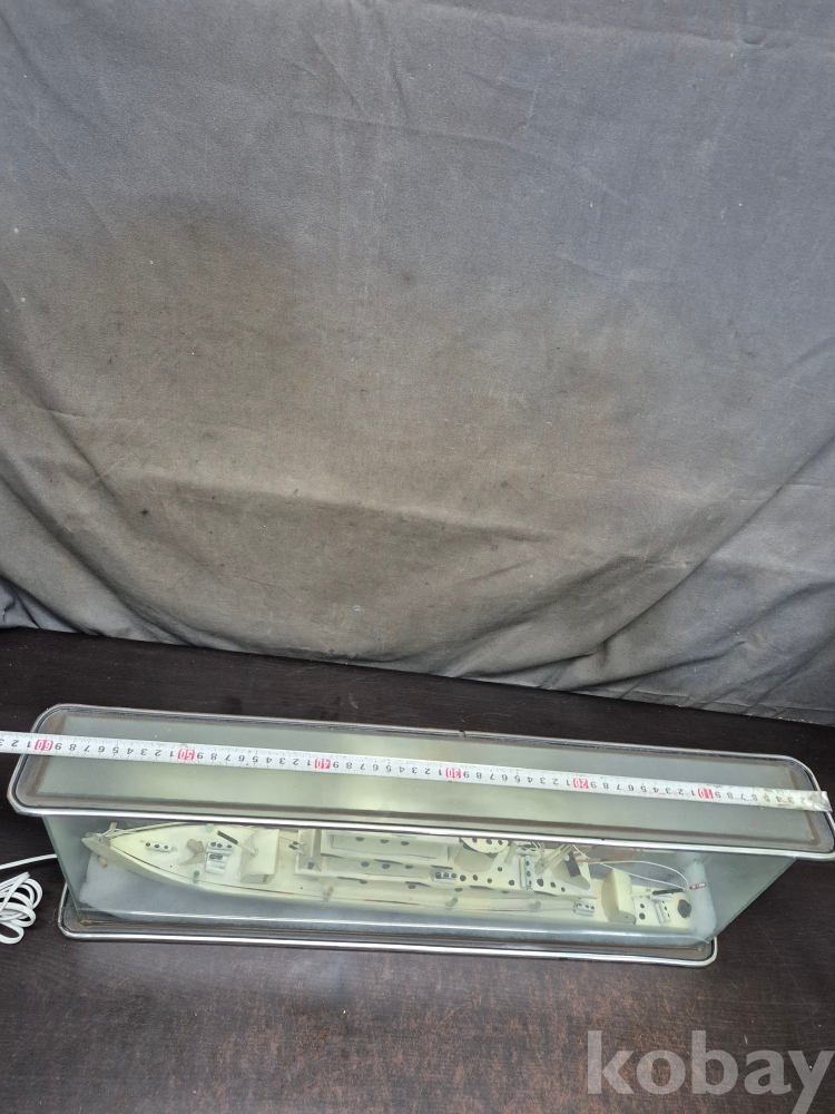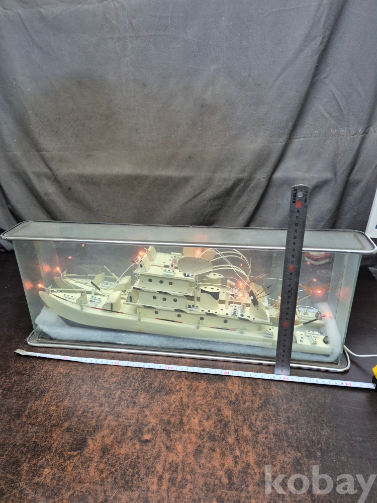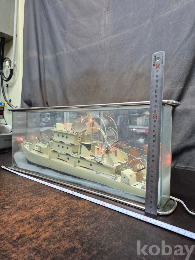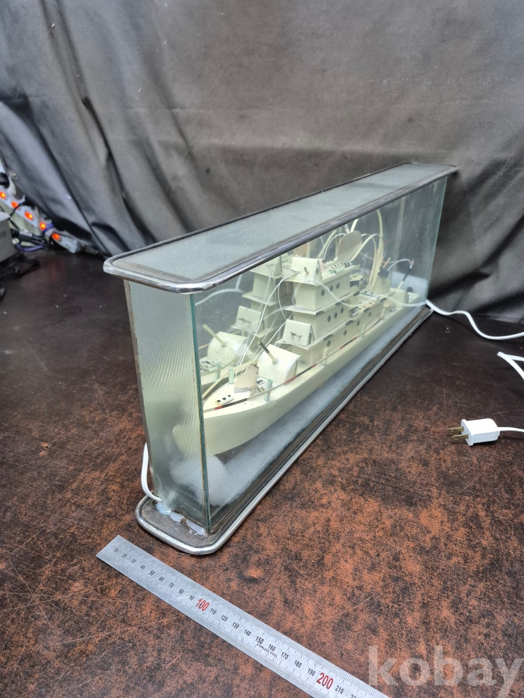 1960년대 유리 진열장에 군함을 손을로 일일이 깍고 만들고 그곳에 LED로 불을 밝혀 주는 진열 장식품 정상작동 110볼트 61*9*23