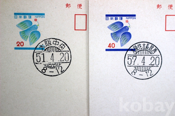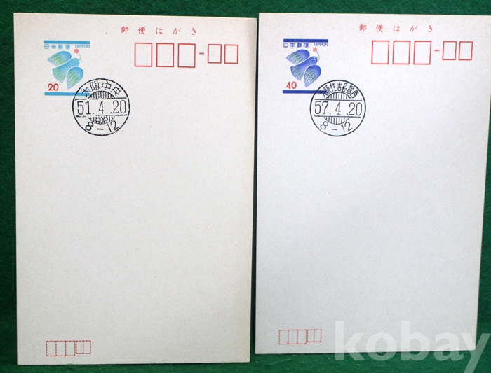 (우편엽서) 1976년 20엔. 82년 40엔 새도안 우편엽서 2매